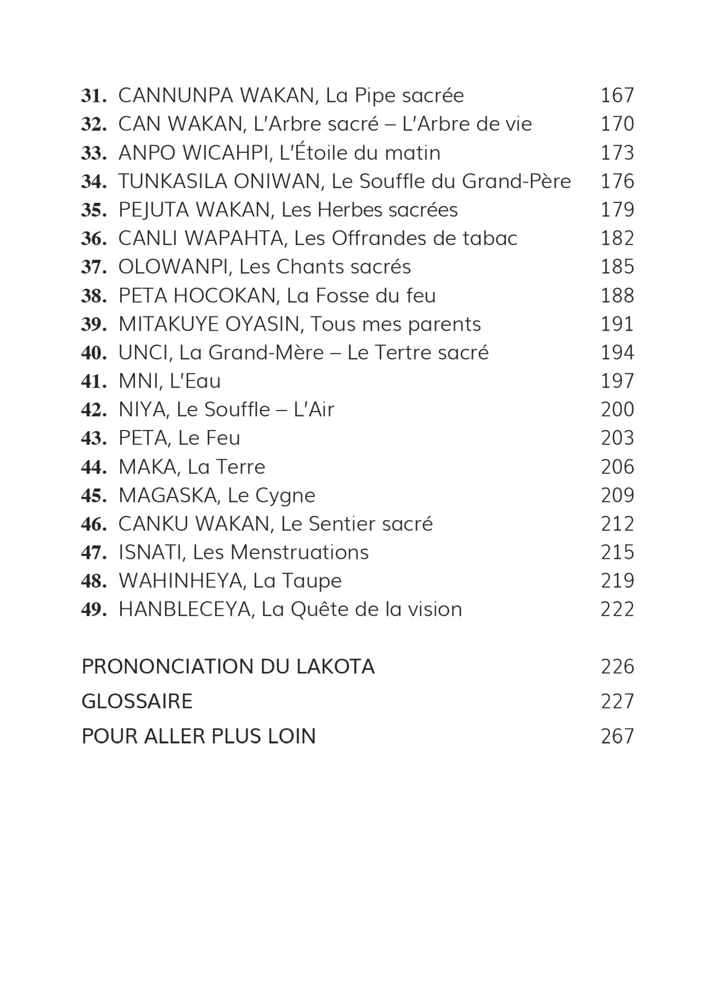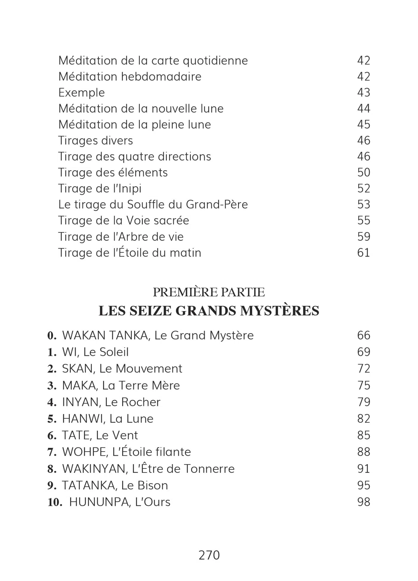 Avec son livre complet, contenant un glossaire des mots-clés de la langue Lakota, vous vous familiariserez avec les différents tirages de ce peuple fascinant et mystique. Cela vous permettra non seulement de prévoir les événements importants de votre vie ou de celle de votre entourage, mais aussi de vous relier à vos dispositions cachées et aux énergies de la Nature.
