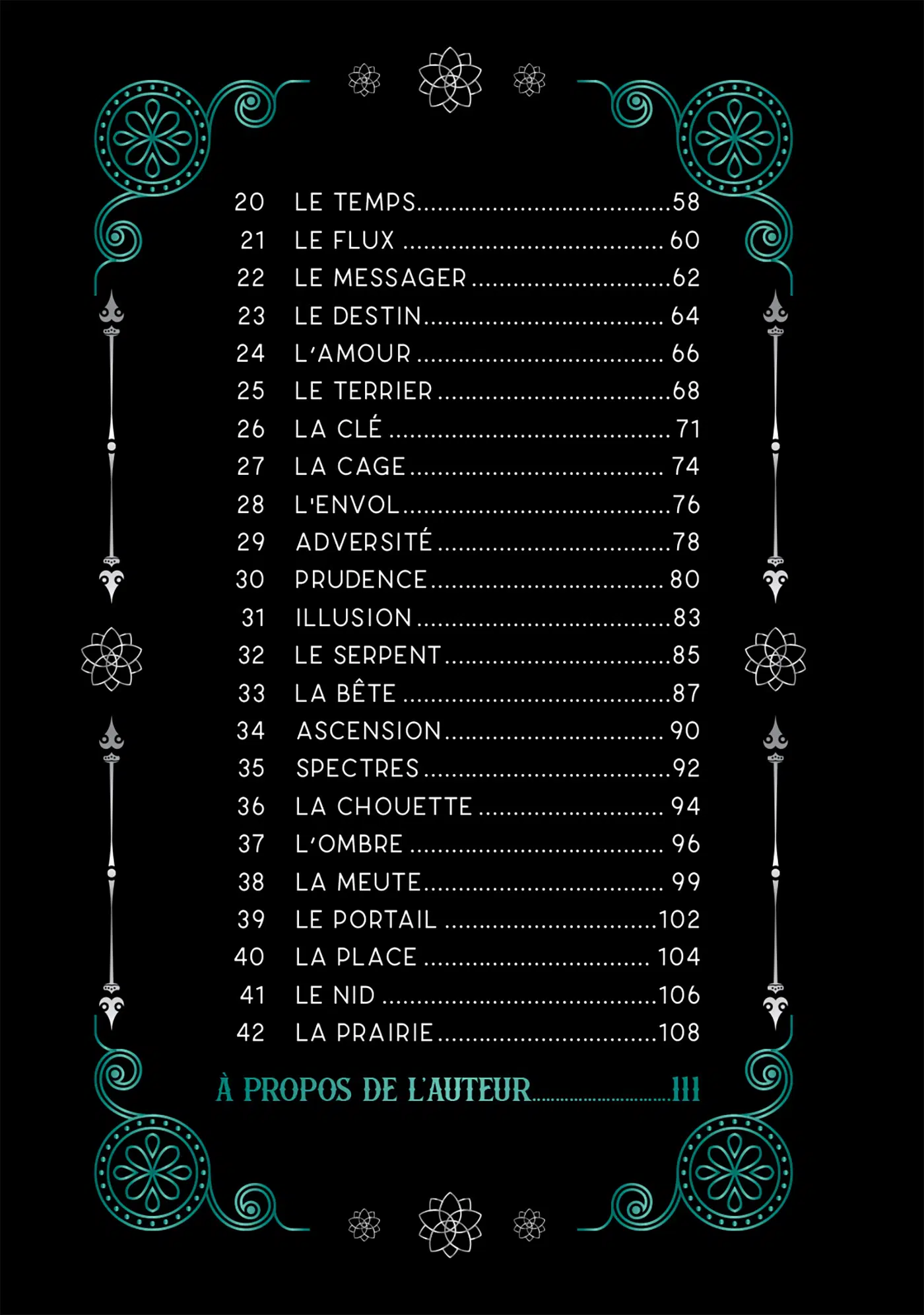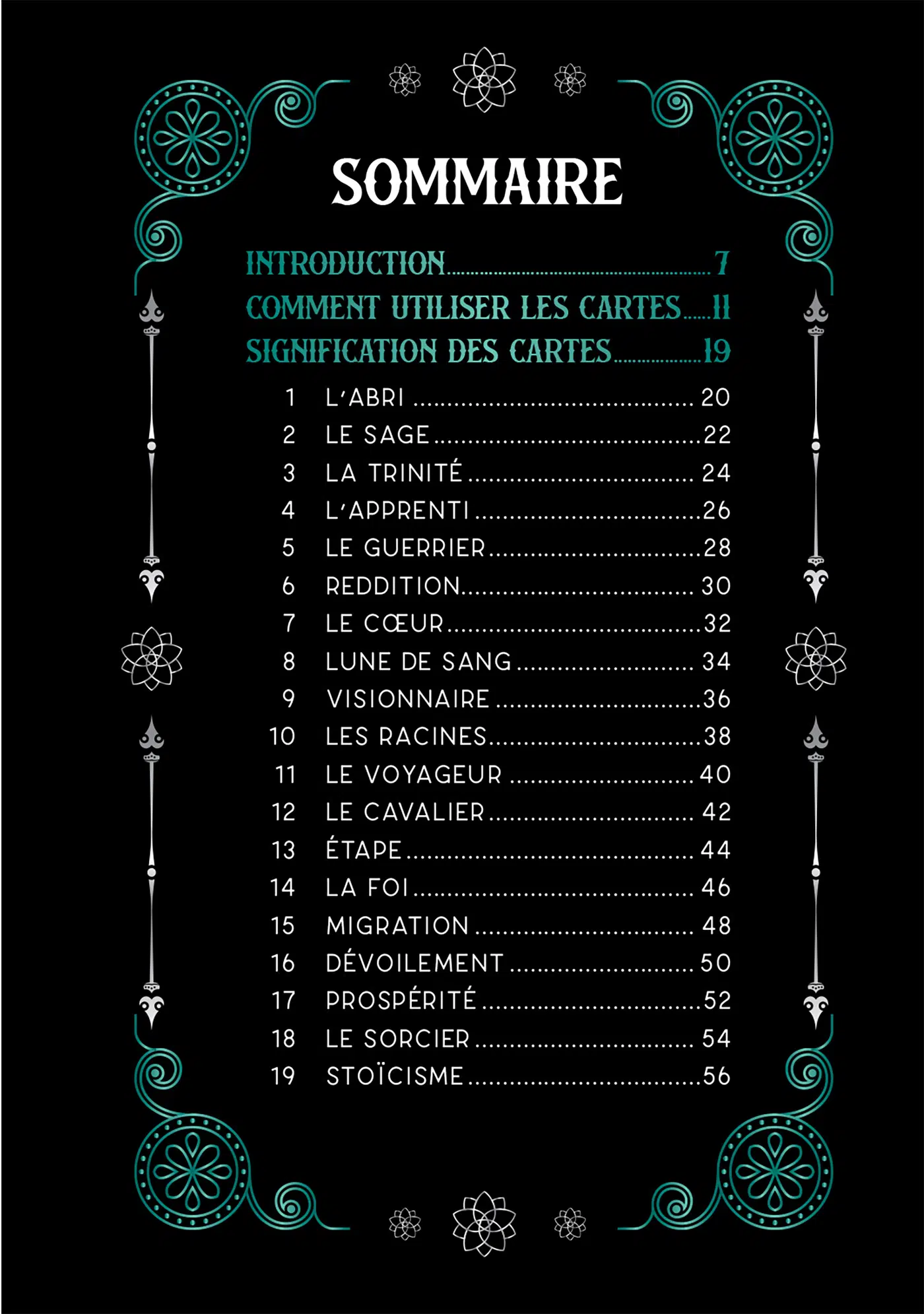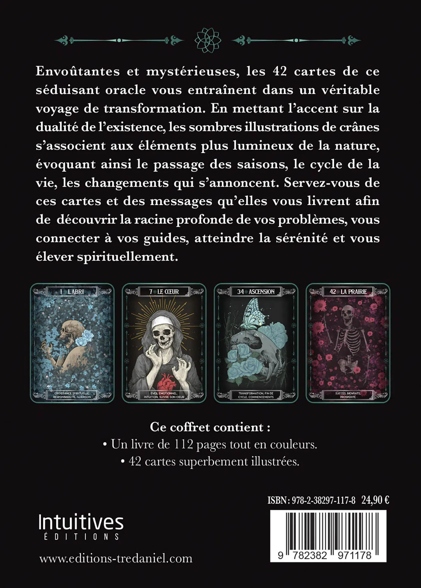 Envoûtantes et mystérieuses, les 42 cartes de ce séduisant oracle vous entraînent dans un véritable voyage de transformation. En mettant l’accent sur la dualité de l’existence, les sombres illustrations de crânes s’associent aux éléments plus lumineux de la nature, évoquant ainsi le passage des saisons, le cycle de la vie, les changements qui s’annoncent.