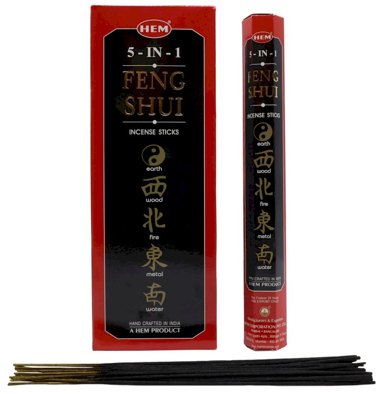 Cet encens est dit "5 en 1" car sa recette permet d'harmoniser chacun des 5 éléments chinois (terre, bois, feu, métal et eau), utilisés dans l'art du Feng Shui.