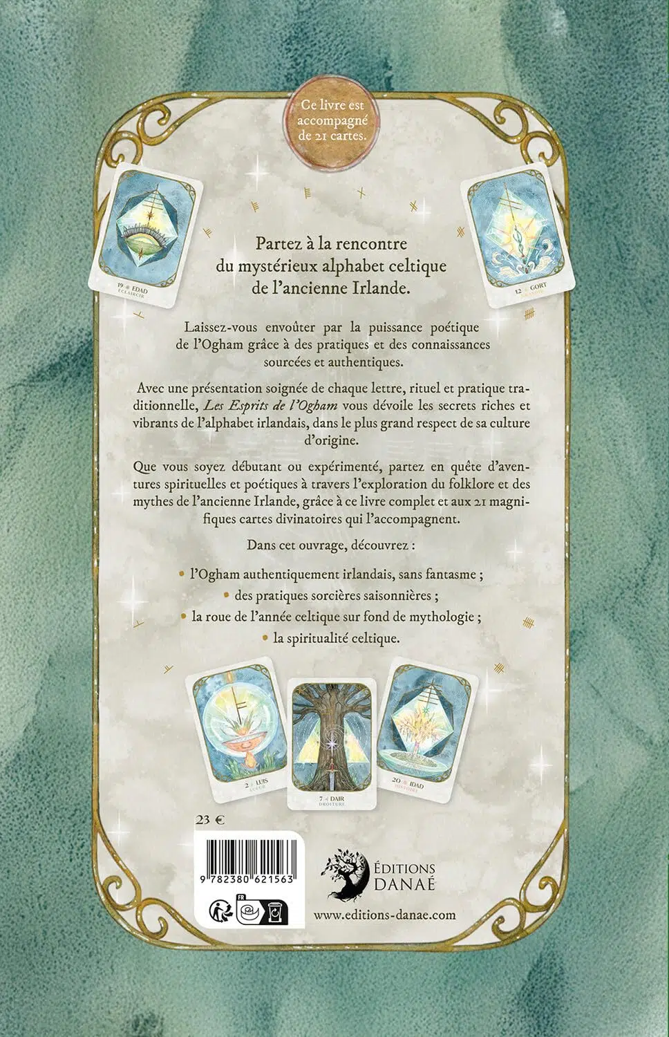 Que vous soyez débutant ou expérimenté, partez en quête d’aventures spirituelles et poétiques à travers l’exploration du folklore et des mythes de l’ancienne Irlande, grâce à ce livre très complet et aux magnifiques cartes divinatoires qui l’accompagnent.