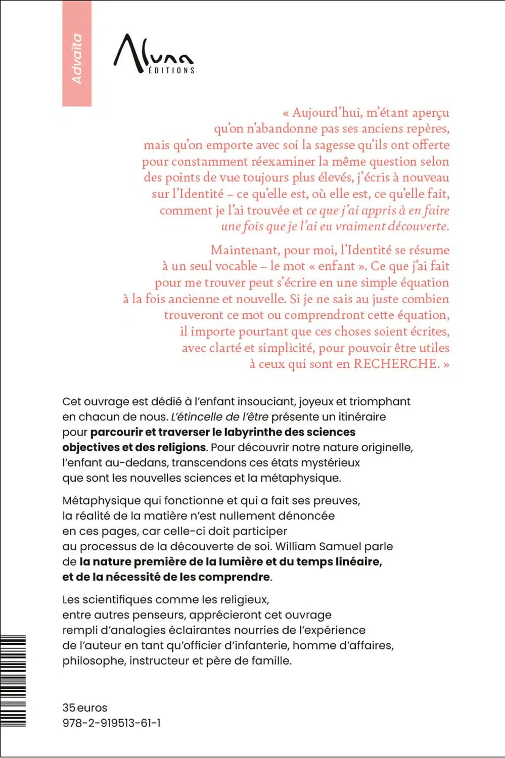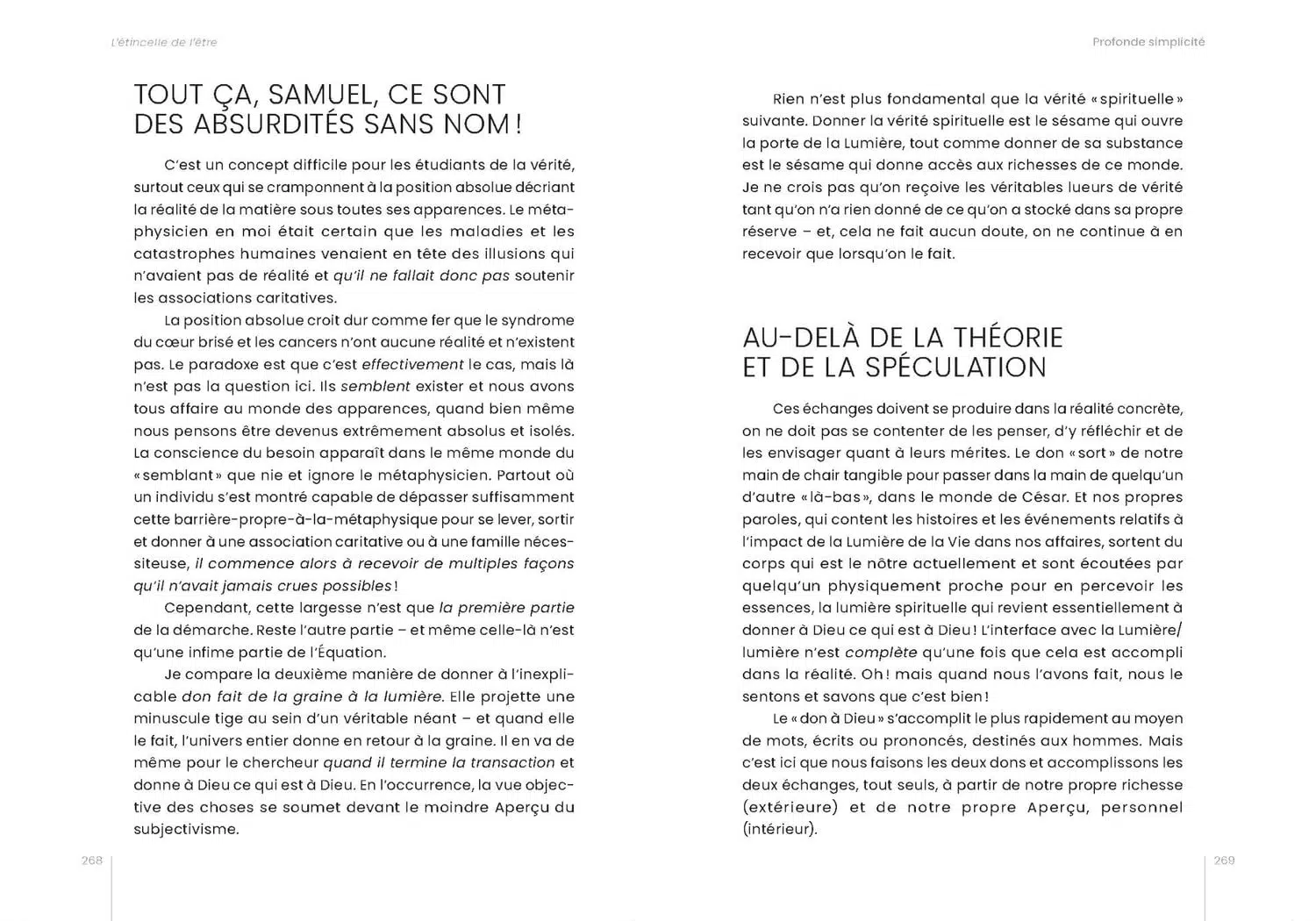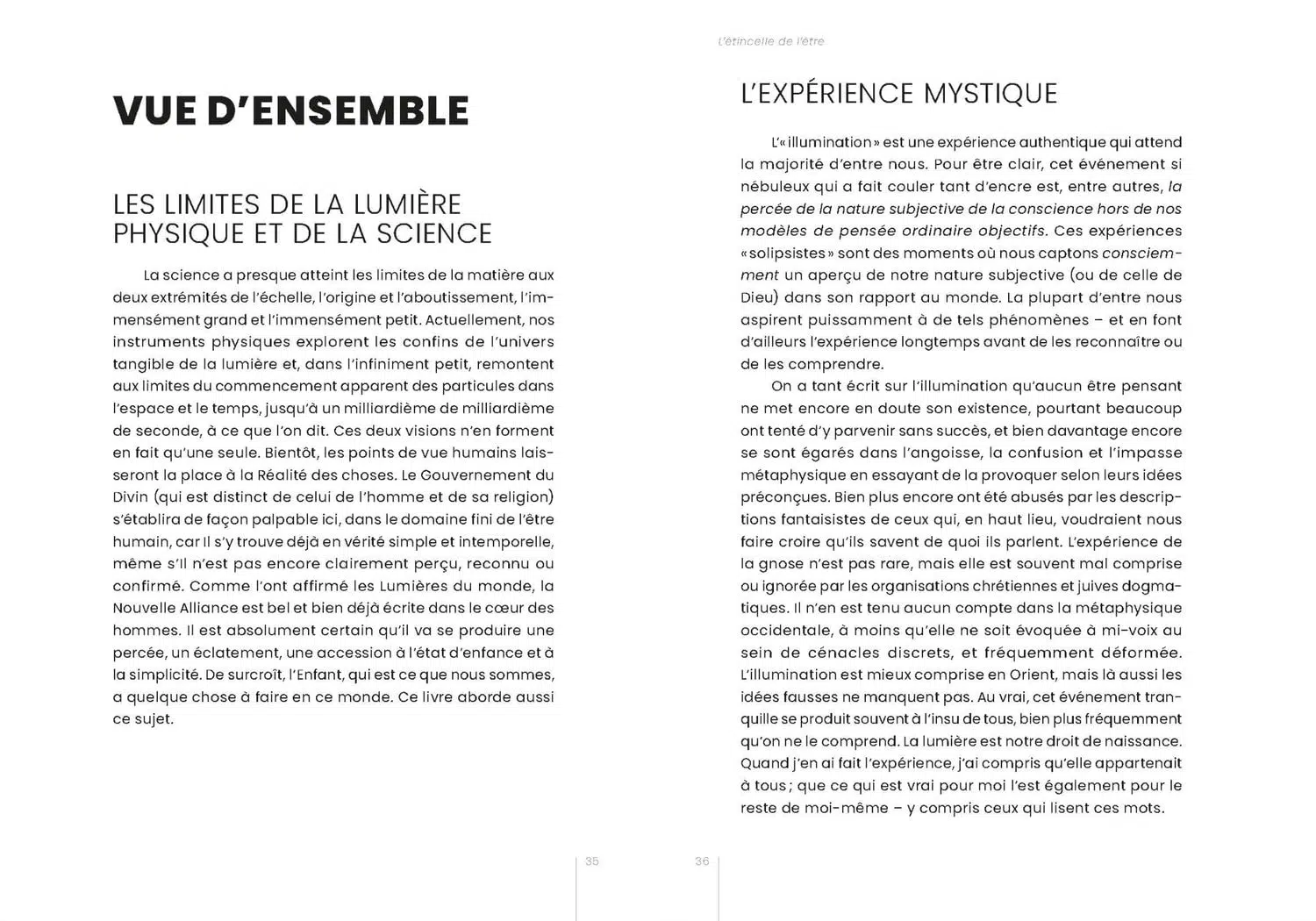 L’étincelle de l’être présente un itinéraire pour parcourir et traverser le labyrinthe des sciences objectives et des religions. Pour découvrir notre nature originelle, l’enfant au-dedans, nous naviguons au cœur des états mystérieux des nouvelles sciences et de la métaphysique, en les transcendant. Métaphysique qui fonctionne et qui a fait ses preuves, la réalité de la matière n’est nullement dénoncée en ces pages, car celle-ci doit participer au processus de la découverte de soi.