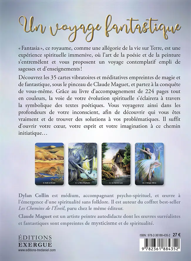Découvrez les 35 cartes d'enseignement vibratoires et méditatives empreintes de magie et de fantastique, sous le pinceau de Claude Maguet, et partez à la conquête de vous-même. Grâce au livre d’accompagnement de 224 pages tout en couleurs, la voie de votre évolution spirituelle s’éclairera à travers la symbolique des textes poétiques. Vous voyagerez ainsi dans les profondeurs de votre inconscient, afin de découvrir qui vous êtes vraiment et de trouver des solutions à vos problématiques. Il suffit d’ouvrir votre cœur, votre esprit et votre imagination à ce chemin initiatique...