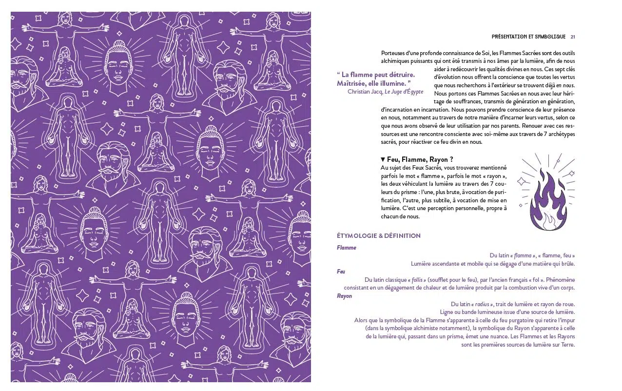 Porteuses d’une profonde connaissance de Soi, les Flammes Sacrées sont des outils alchimiques puissants pour redécouvrir les qualités sacrées qui vivent (et parfois sommeillent) en nous. Ces 7 clés d’évolution nous offrent la conscience que toutes les vertus que nous recherchons à l’extérieur se trouvent déjà en nous.