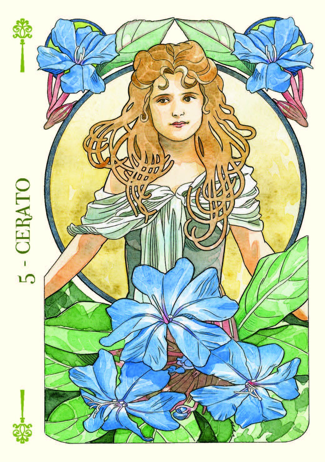 L'œuvre Art Nouveau d'Antonella Castelli offre le cadre idéal pour un oracle délicat qui met en lumière notre lien avec la beauté et la nature.