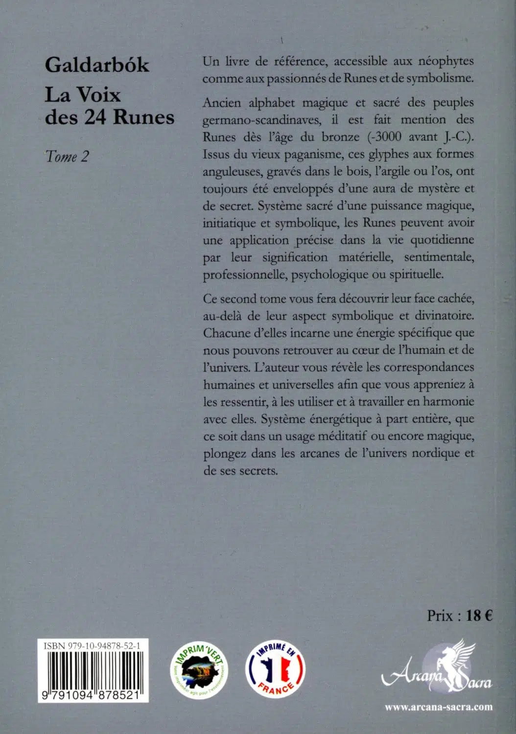 Ce second tome vous fera découvrir la face cachée des Runes, au-delà de leur aspect symbolique et divinatoire. Chacune d'elles incarne une énergie spécifique que nous pouvons retrouver au coeur de l'humain et de l'univers. L'auteur vous révèle les correspondances humaines et universelles afin que vous appreniez à les ressentir, à les utiliser et à travailler en harmonie avec elles. Système énergétique à part entière, que ce soit dans un usage méditatif ou encore magique, plongez dans les arcanes de l'Univers nordique et de ses secrets.