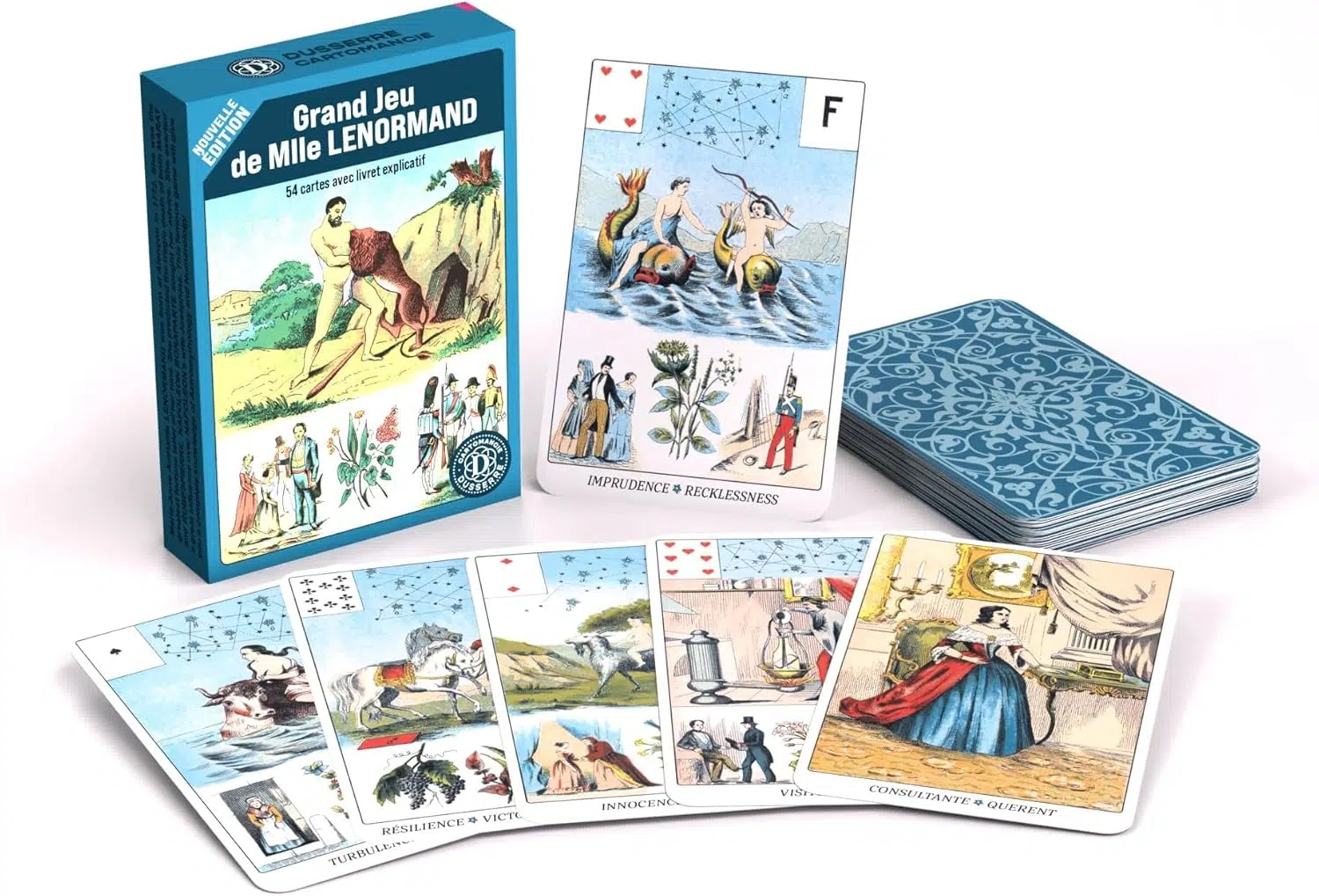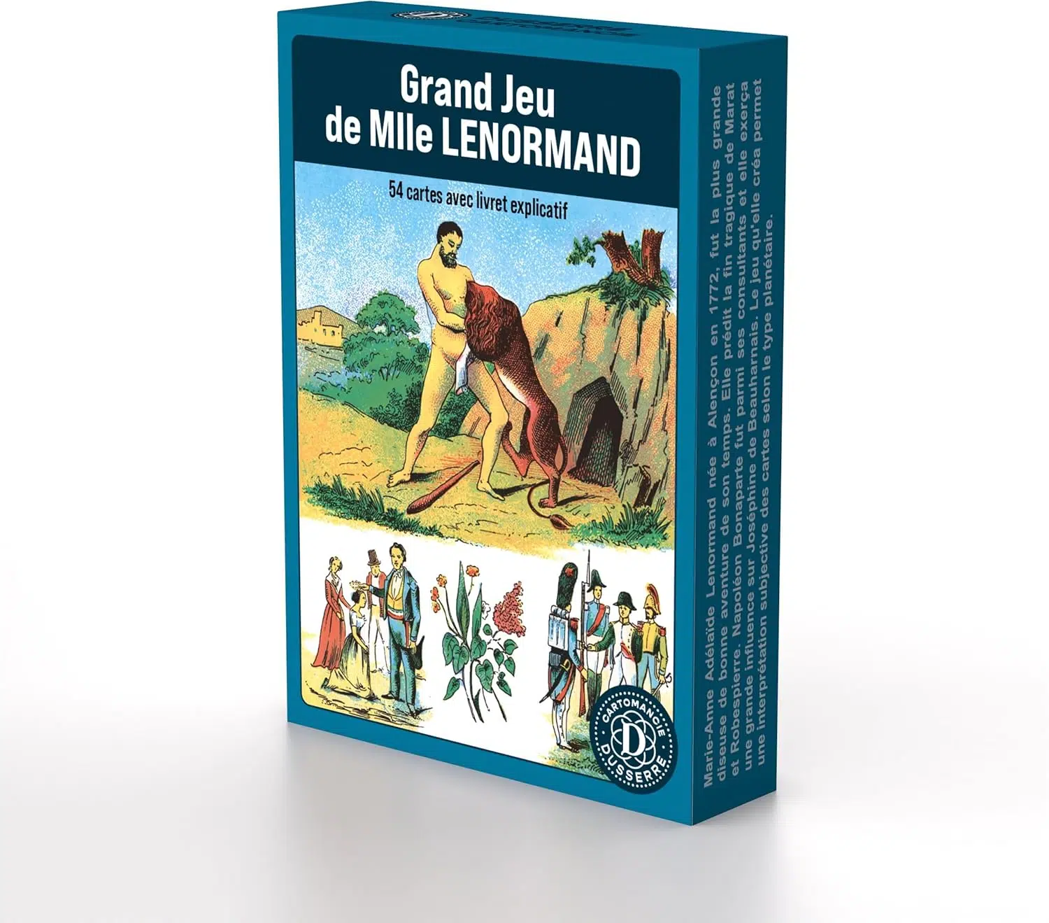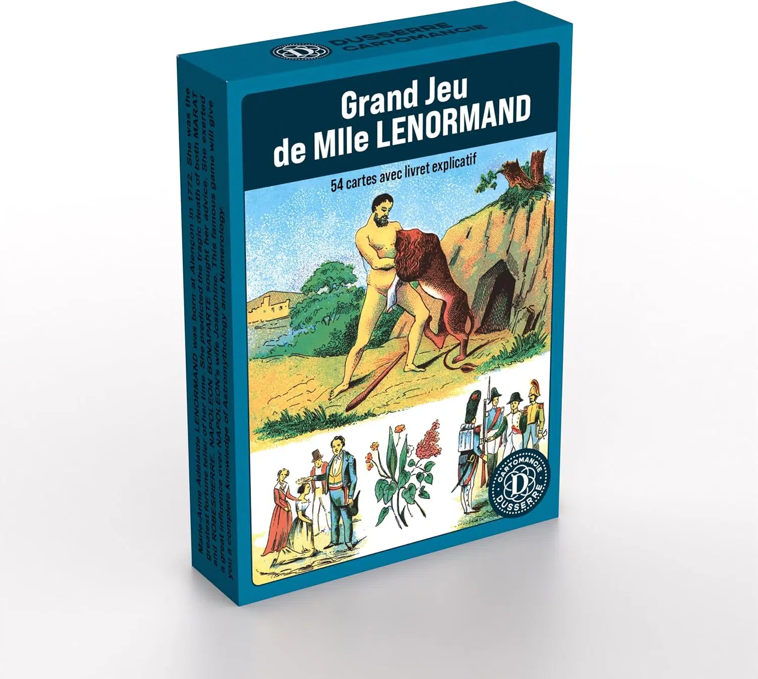 Découvrez cette superbe nouvelle édition du Grand Lenormand - Jeu de cartes complet de 54 cartes, créée par Mme Breteau, (prétendue élève de Marie-Anne Lenormand) au XIXe siècle, bien après la mort de Mlle Lenormand.