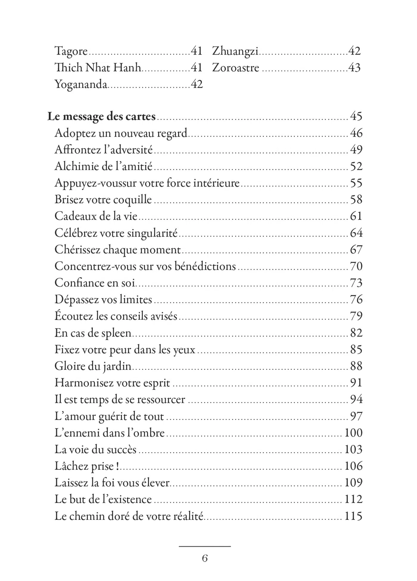 Puissante combinaison d’indices visuels et écrits, chaque illustration recèle un millier d’interprétations. Partez au-delà du rationnel pour une quête lumineuse où votre potentiel connaîtra une évolution nouvelle et où vos passions, vos valeurs et vos amours seront au cœur de votre histoire.