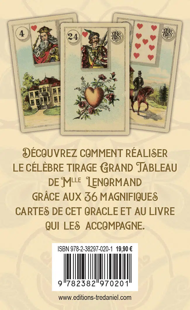 Cet oracle de 36 magnifiques cartes d'enseignement présente une méthode de tirage bien connue des amateurs de Mlle Lenormand : le « Grand Tableau ». Comme son nom l’indique, cette méthode de tirage offre un éclairage, non point partiel, mais global de la vie du consultant : santé, vie sentimentale, professionnelle…