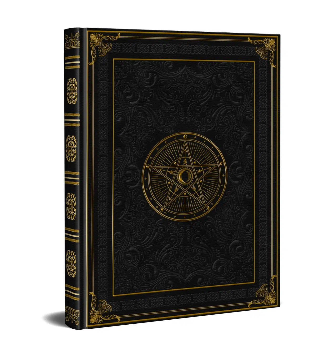 Ce carnet vierge de 220 pages au format A5 (15 x 21) et à la couverture rigide, en similicuir noir et ornée de dorures, deviendra votre compagnon idéal en tant que grimoire de pratique ou en tant que compagnon de route pour noter tout ce que vous souhaitez.