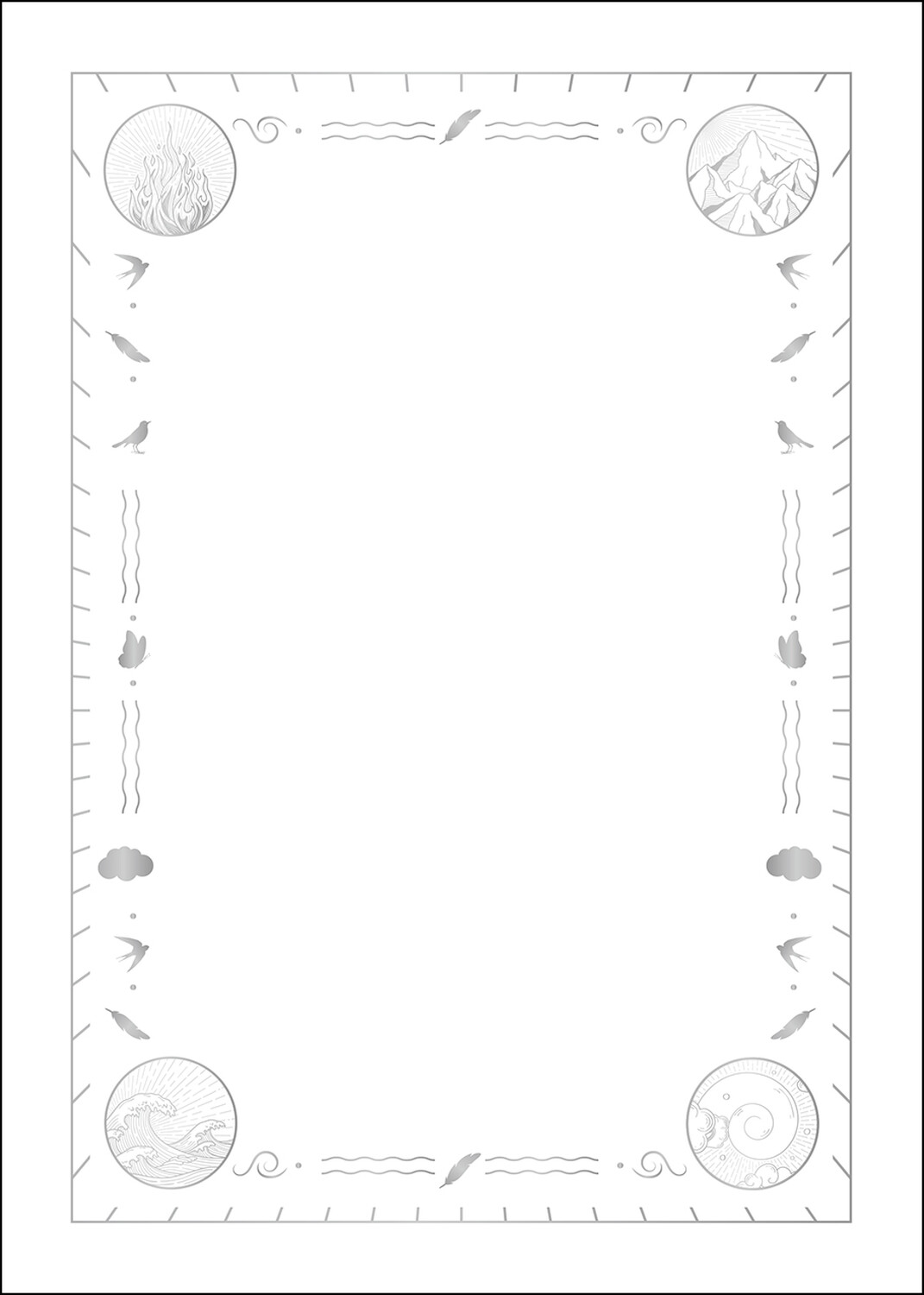 Ce carnet au format A5 (15 x 21) et à la couverture rigide, en similicuir et ornée de marquage argenté foncé, deviendra votre compagnon idéal en tant que grimoire de pratique ou en tant que compagnon de route pour noter tout ce que vous souhaitez. Laissez-vous charmer par sa magnifique couverture sur le thème de l'élément Air !