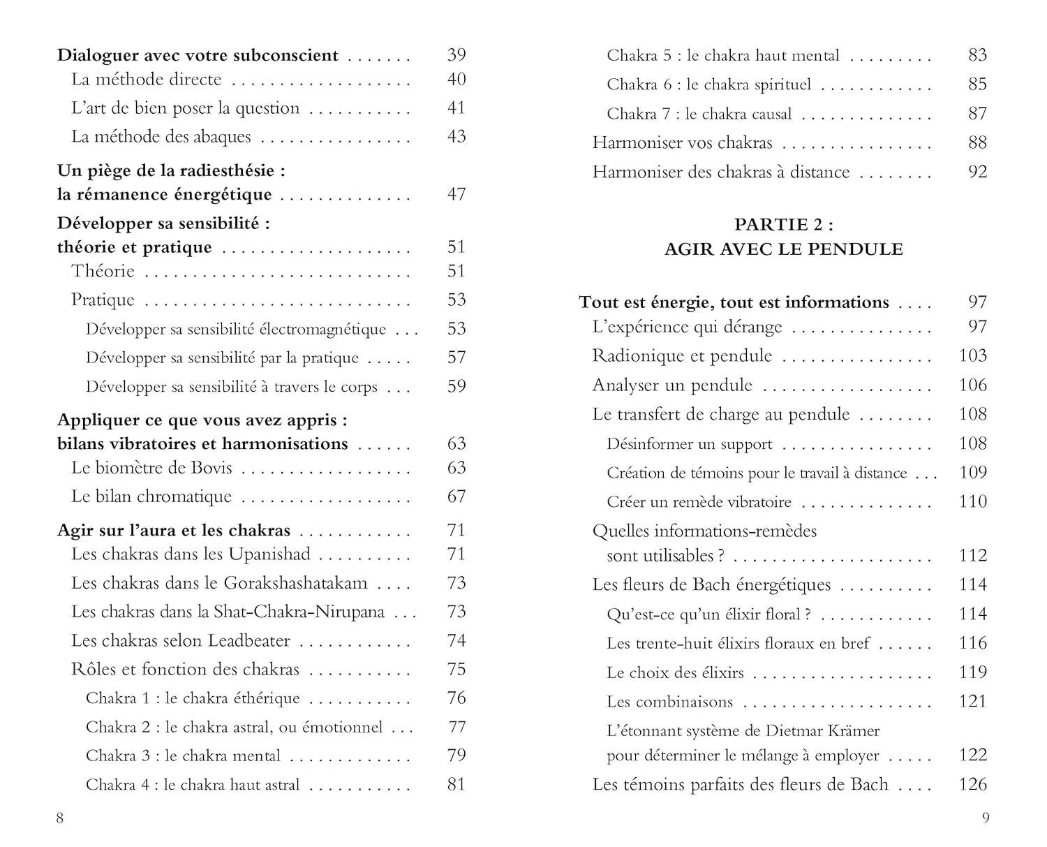 Vous saurez utiliser votre pendule pour répondre à vos questions, mais également pour protéger votre habitation, émettre des ondes pour influencer une situation, agir sur l’aura ou les chakras, créer un remède vibratoire, purifier les énergies ou encore fabriquer des talismans ou objets informés comme les merveilleux cailloux Busby.