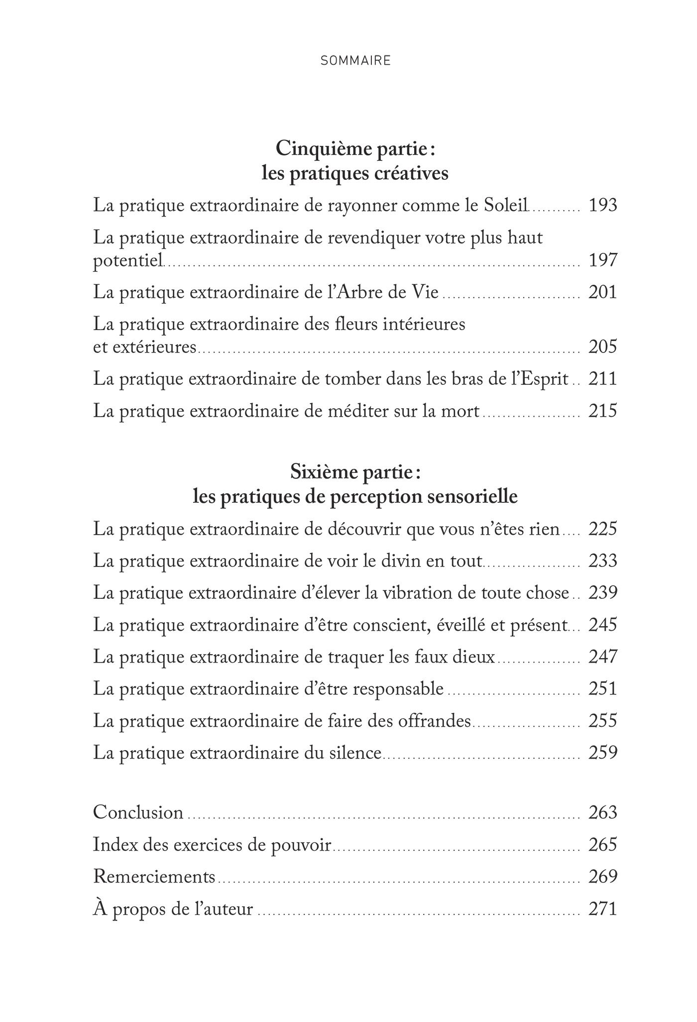 Les pratiques de ce livre sont organisées en six catégories :