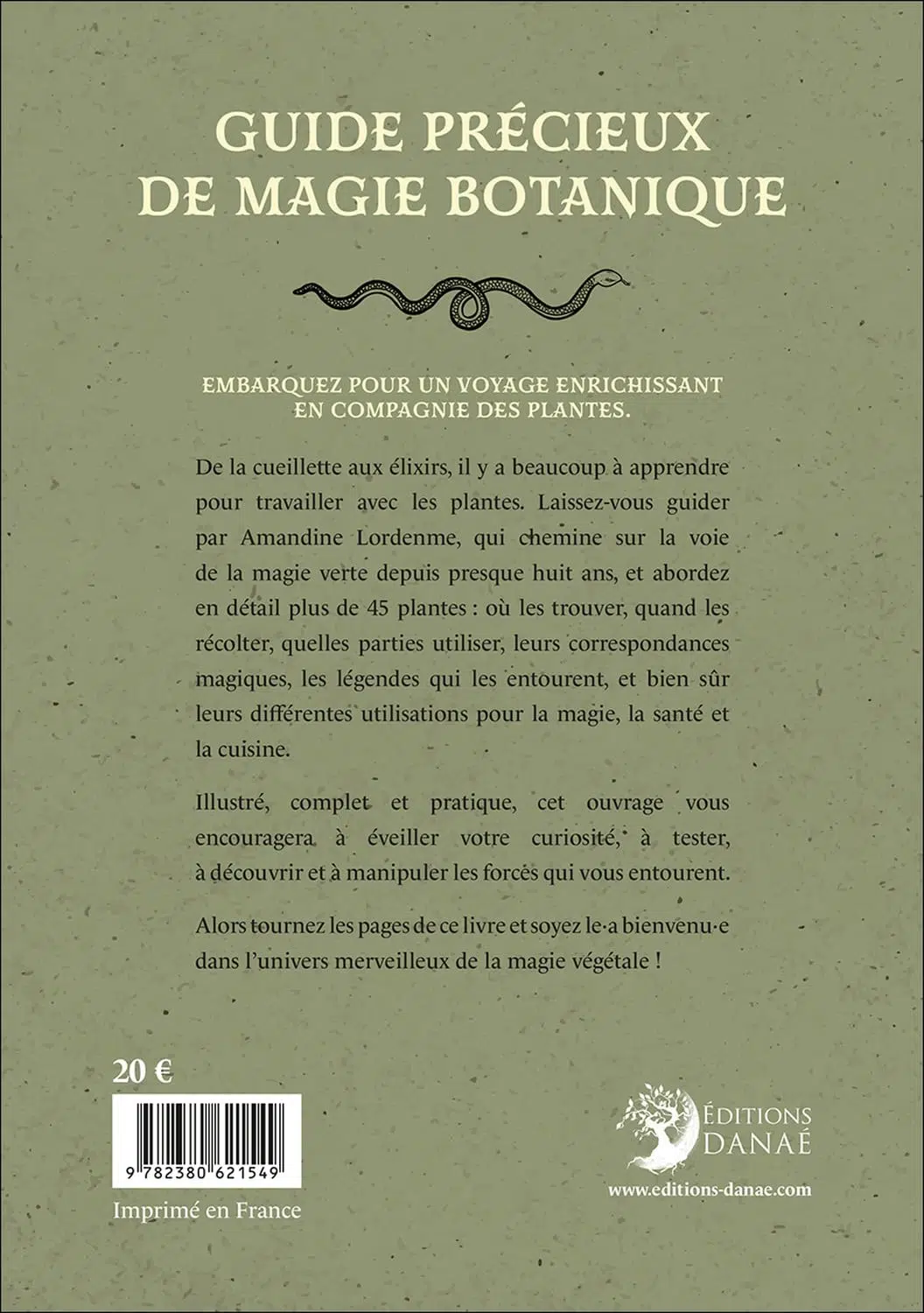 Embarquez pour un voyage enrichissant en compagnie des plantes. De la cueillette aux élixirs, il y a beaucoup à apprendre pour travailler avec les plantes. Laissez-vous guider par Amandine Lordenme, qui chemine sur la voie de la magie verte depuis presque huit ans, et abordez en détail plus de 45 plantes : où les trouver, quand les récolter, quelles parties utiliser, leurs correspondances magiques, les légendes qui les entourent, et bien sûr leurs différentes utilisations pour la magie, la santé et la cuisine.