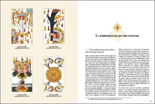 Depuis le berceau antique, où déjà jeu et divination s’entremêlent, au Moyen Âge dans lequel s’ancre aussi la symbolique des couleurs et figures, des œuvres de la Renaissance italienne au mouvement occultiste français du XIXe siècle, l’Histoire est convoquée pour expliquer le tarot. Entre autres trouvailles, l’auteure dévoile également dans ce beau livre les plus anciens tirages et interprétations du tarot. Extraits du fond des âges de la cartomancie, certains de ces écrits n’avaient jamais été divulgués jusqu’alors.