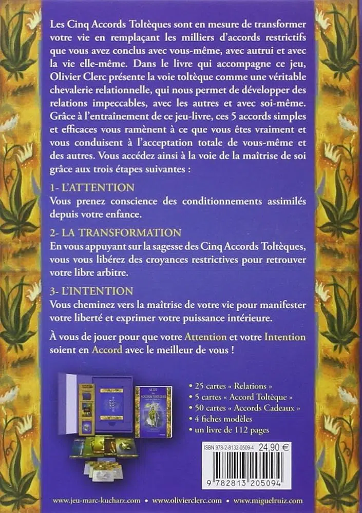La Voie du Chevalier, pour des relations impeccables.Les Accords Toltèques ont touché des millions de gens dans le monde. Pour favoriser leur mise en pratique, quoi de plus efficace qu'un jeu ? Grâce au Jeu des Accords Toltèques, qui a déjà changé la vie de millions de gens, vous parviendrez à transformer une à une les relations difficiles présentes dans votre vie. Dans le livre qui accompagne ce jeu, Olivier Clerc présente la voie toltèque comme une véritable chevalerie relationnelle qui permet de développer des relations entières, avec les autres et avec soi-même.