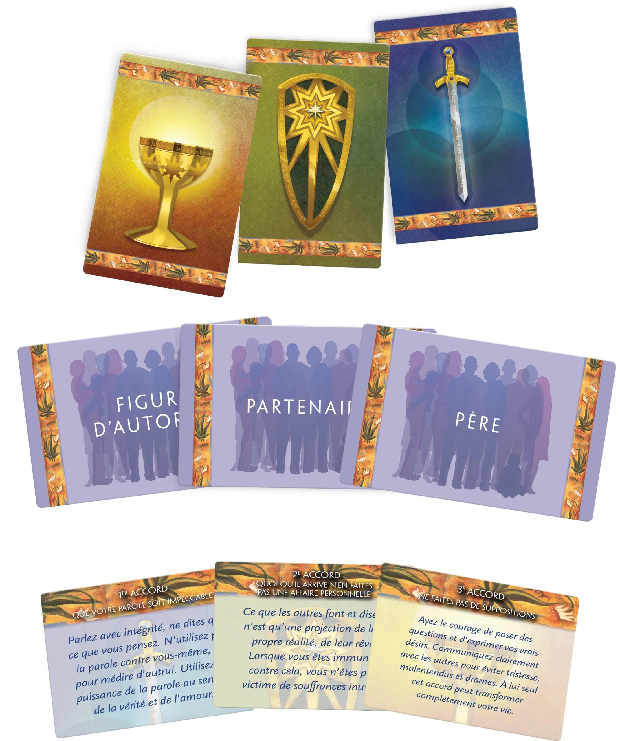 Un jeu de 80 cartes (25 cartes 'relation', 5 cartes 'accords toltèques', 50 cartes 'accords cadeau')