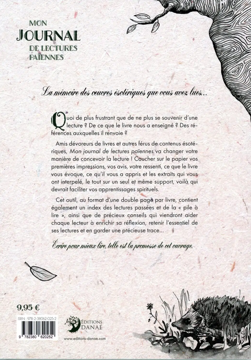 Amis dévoreurs de livres et autres férus de contenus ésotériques, Mon journal de lectures païennes va changer votre manière de concevoir la lecture ! Coucher sur le papier vos premières impressions, vos avis, votre ressenti, ce que le livre vous évoque, ce qu’il vous a appris et les extraits qui vous ont interpelé, le tout sur un seul et même support, voilà qui devrait faciliter vos apprentissages spirituels.