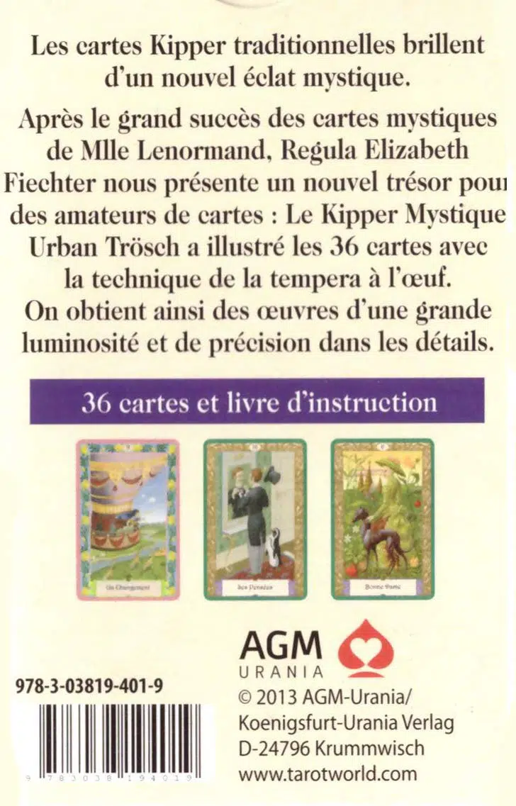 Nées au XIXème siècle et souvent comparées au Petit Lenoramnd, ces cartes font partie des cartes d’oracle les plus utilisées en cartomancie. Regula Fiechter, auteur du très populaire « Lenormand mystique », présente avec le « Kipper mystique » un autre petit bijou pour les amateurs de cartes.