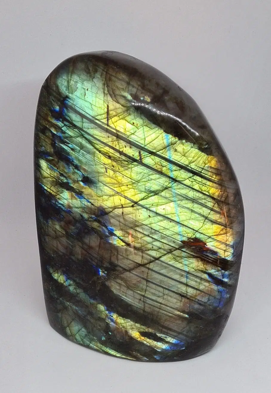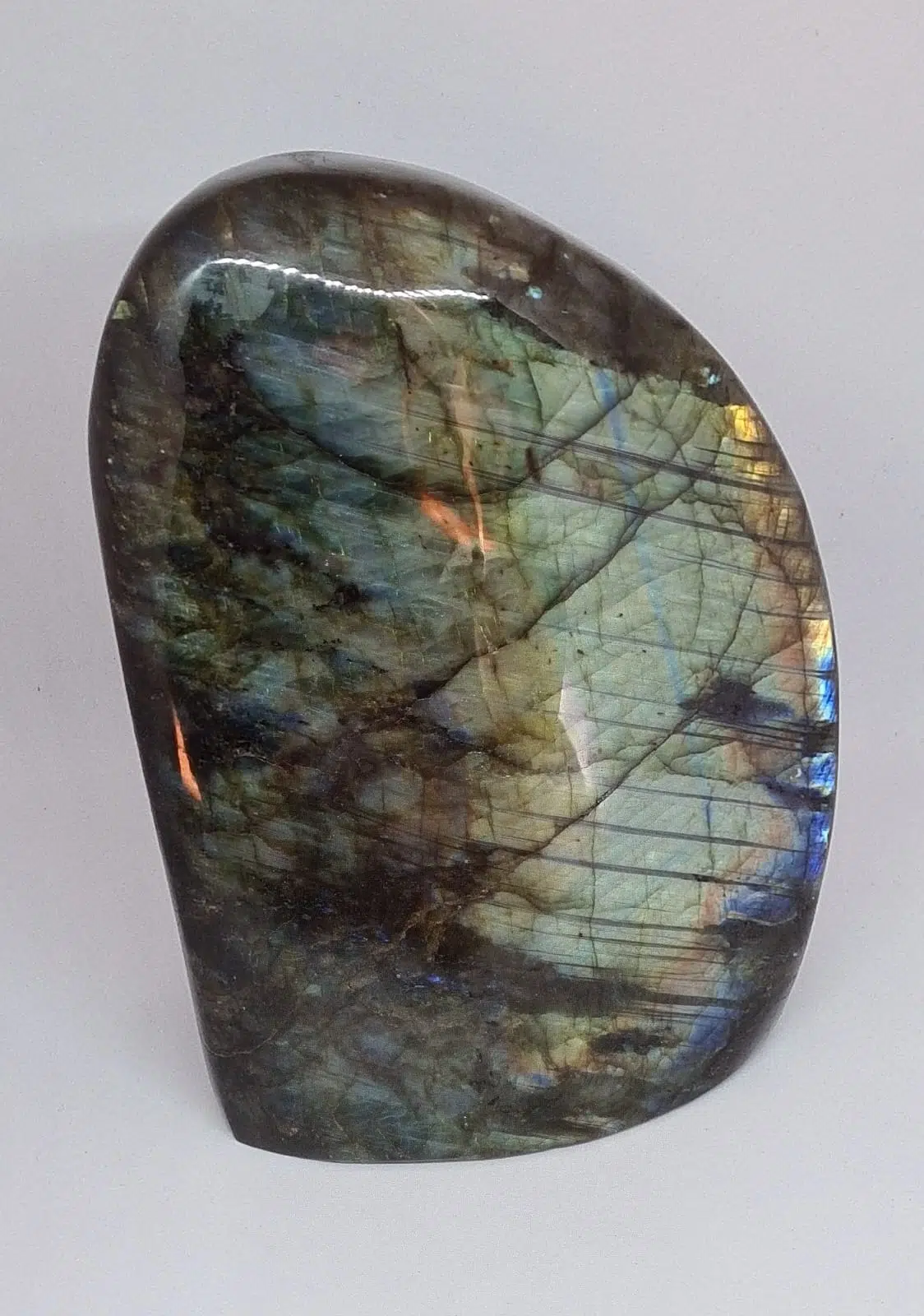 Tout le monde connaît la belle Labradorite, éblouissante par ses reflets multicolores, semblables à des ailes de papillons. Favorisant l'ouverture spirituelle, l'intuition et le magnétisme, c'est une pierre qui protège mais dans le sens où elle absorbe la négativité à la place de son porteur. Agissant donc comme une éponge énergétique, elle nécessite d'être très régulièrement nettoyée afin de ne pas saturer voire déborder, sans quoi elle perd toute son efficacité, voire se brise.