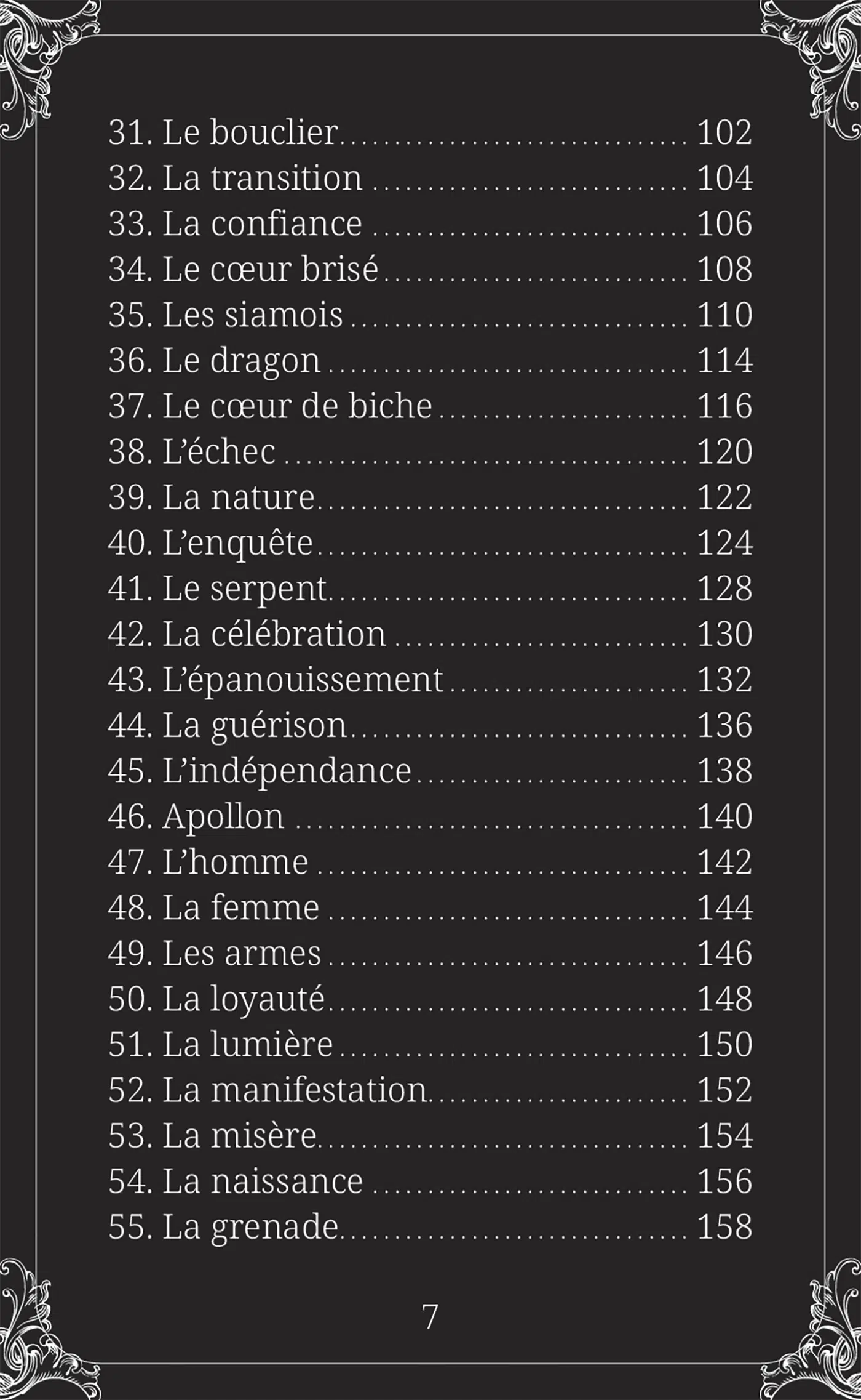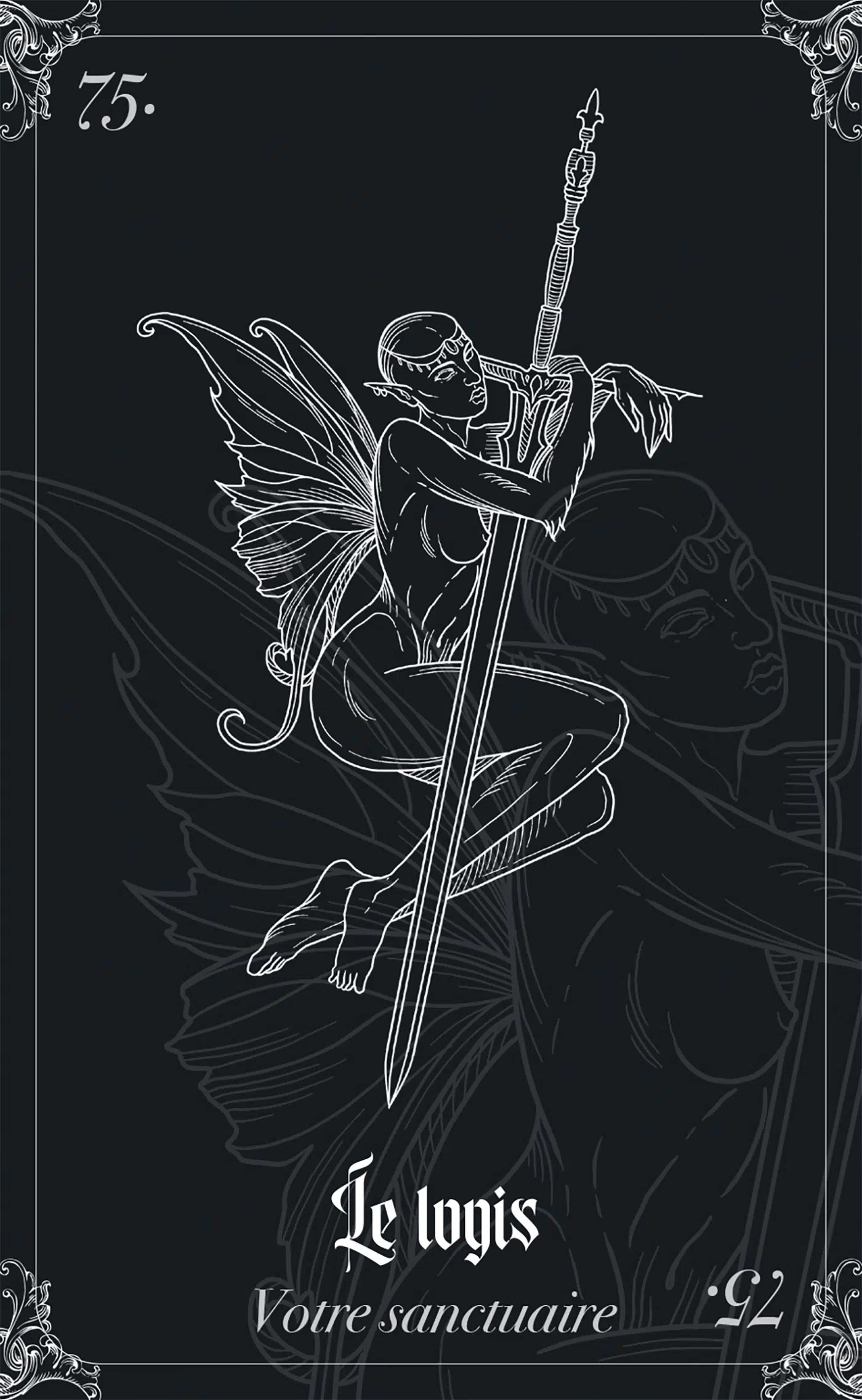 Un oracle à l'univers médiéval fantastique, peuplé de figures mythologiques et de créatures mystiques.