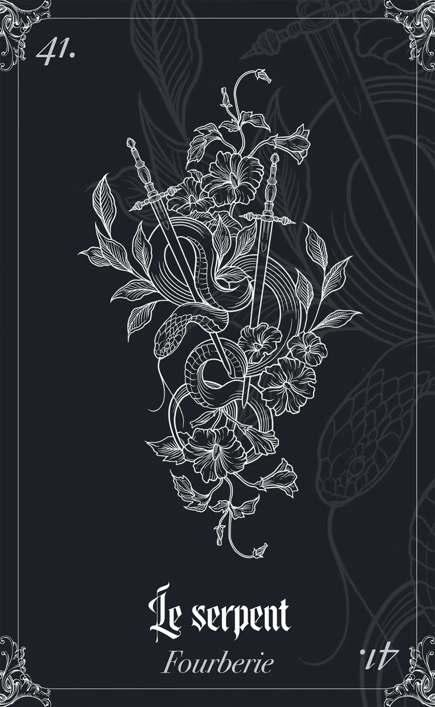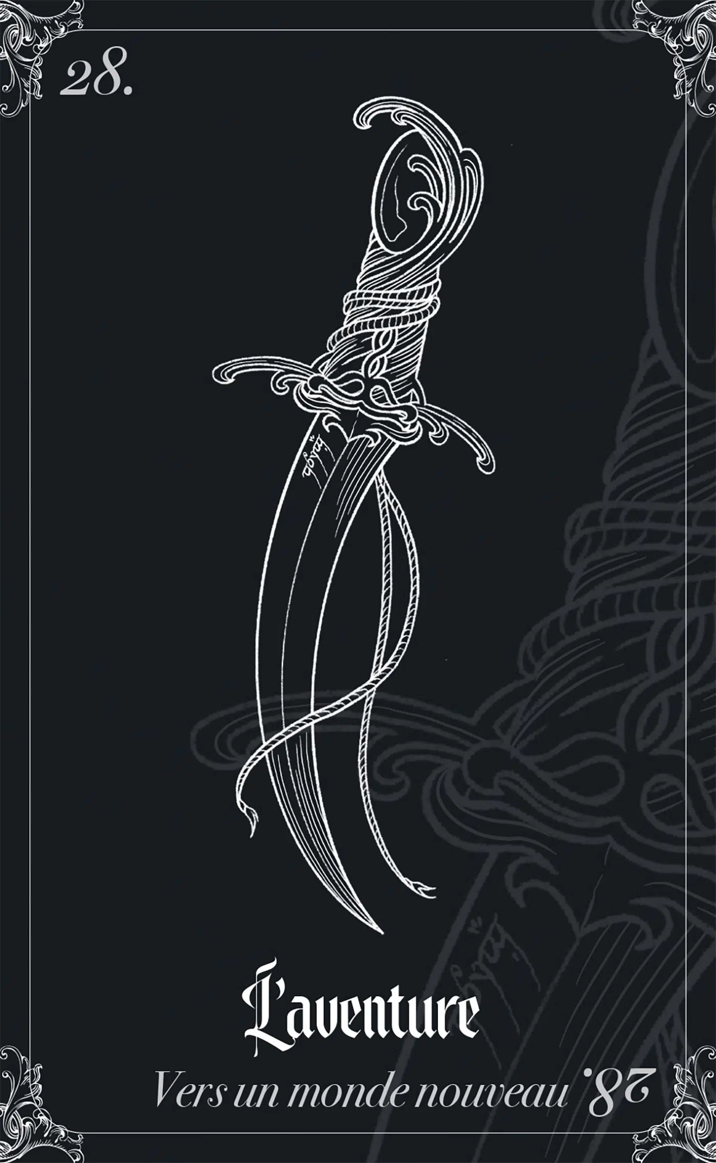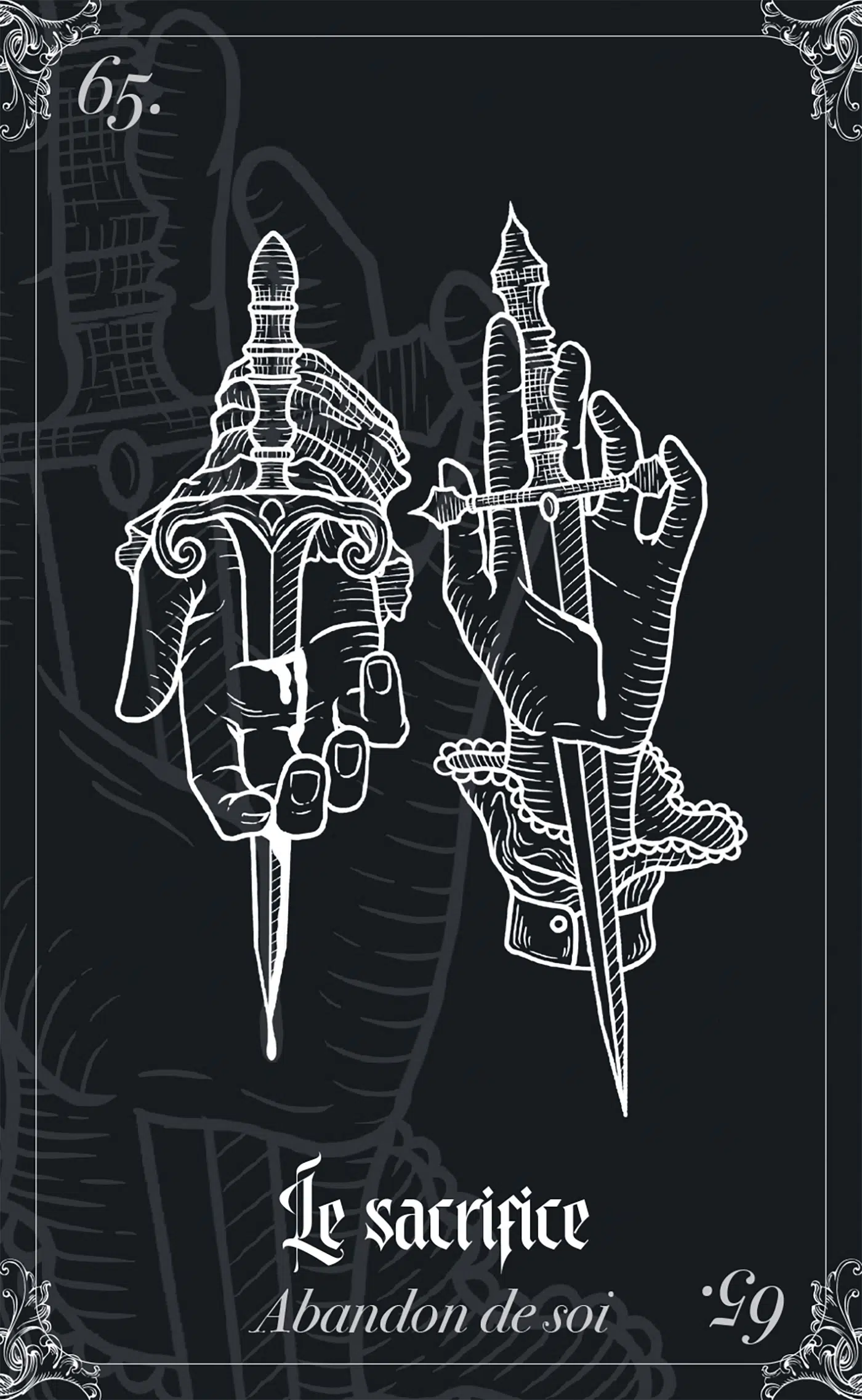 Cet oracle s'inspire de certains arcanes du tarot (avec une structure très différente), et propose de nombreux autres symboles et archétypes innovants. Son visuel noir aux illustrations proches d'un style de gravure médiévale donne un aspect particulier à ce jeu, à la fois moderne et ancien. Un jeu de mots manifeste : entre lame de tarot, lame d'épées et chemin de l'âme.
