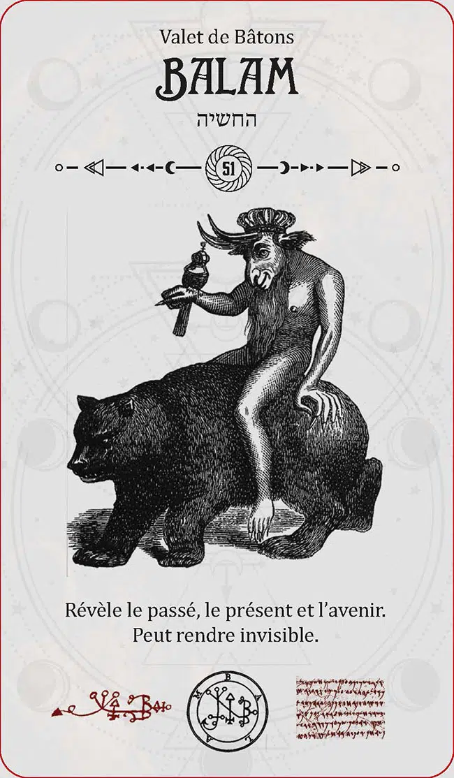 Grâce au livre d’accompagnement, vous découvrirez les noms et les caractéristiques des démons antiques, le nom de l’ange en hébreu qui contrôle chacun d’eux, mais aussi la signification de chaque carte pour répondre à vos interrogations sur le passé, le présent et l’avenir.