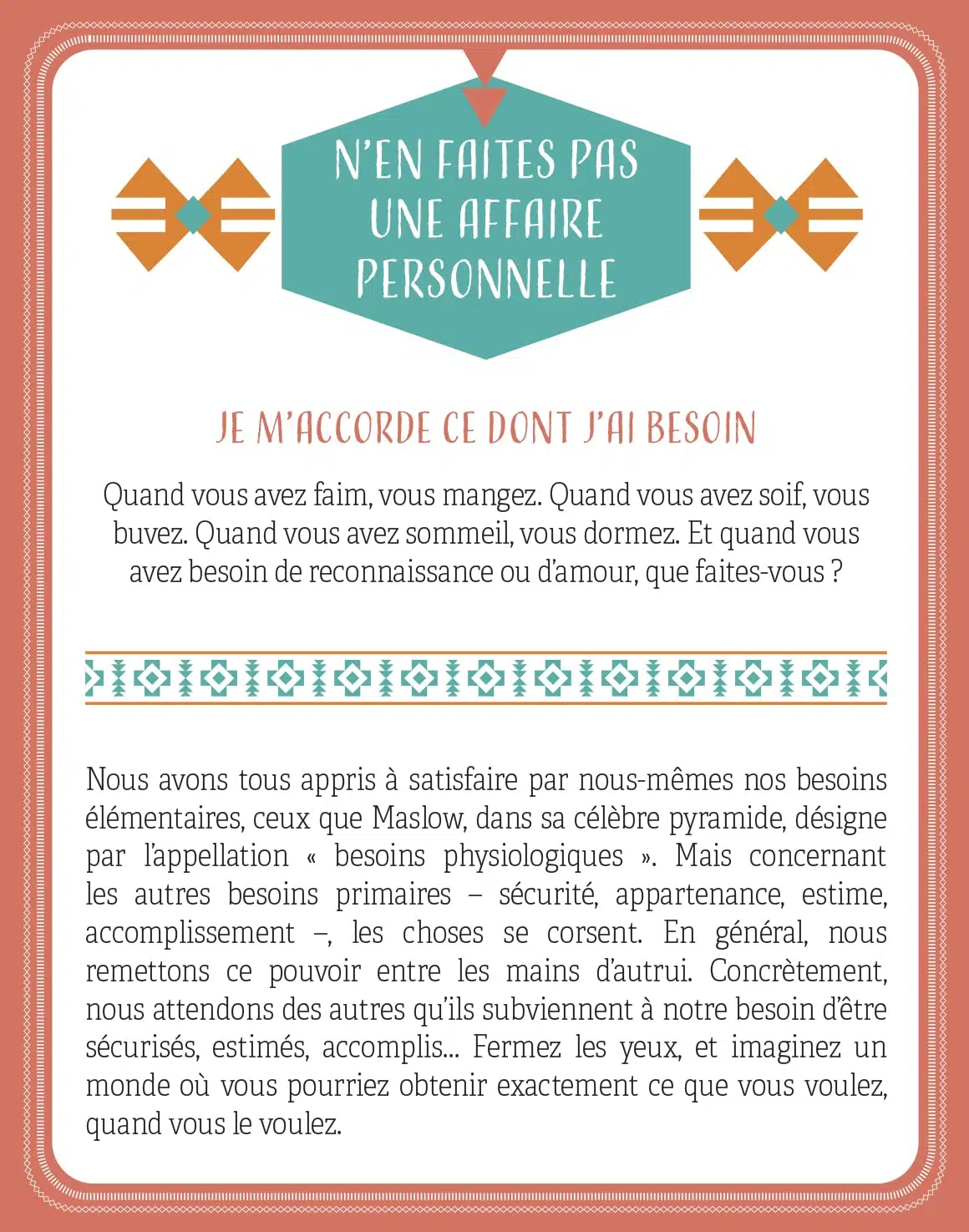 52 cartes pour apprendre à appliquer ces principes de vie et à se les approprier à travers de nombreux exercices, afin de trouver le chemin de la liberté personnelle et du bonheur :
