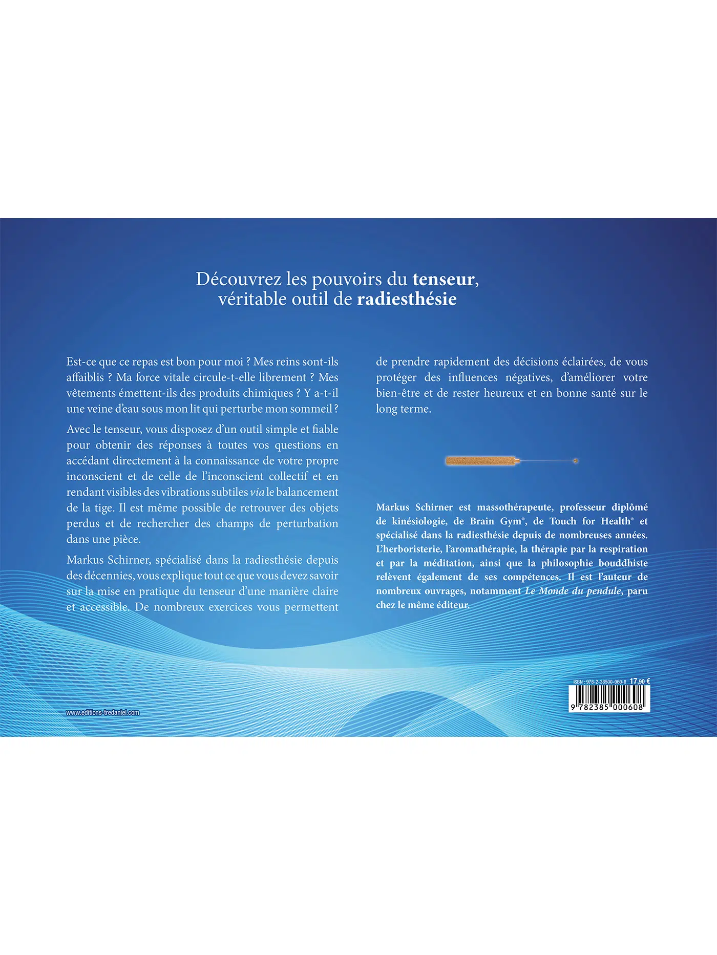 Avec le tenseur, vous disposez d'un outil simple et fiable pour obtenir des réponses à ces questions et à bien d'autres auxquelles il est difficile de répondre de manière traditionnelle. Parce que vous accédez directement à la connaissance de votre propre inconscient et de celle de l'inconscient collectif et que vous rendez visibles des vibrations subtiles via le balancement de la tige. Il est même possible de retrouver des objets manquants et de transférer des énergies positives.