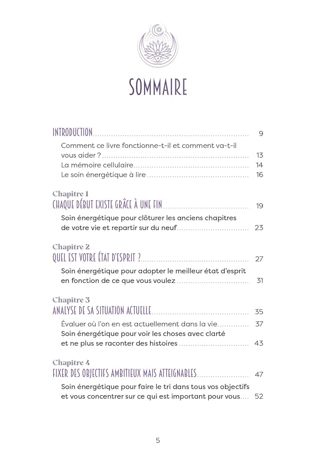 Pour ne pas mener une vie dictée par vos blessures du passé, pour dissoudre les blocages qui ont pu se former, il est nécessaire de régulièrement nettoyer vos mémoires cellulaires. Ce guide vous présente 19 protocoles énergétiques puissants, qui vous aideront à rétablir votre équilibre corporel. Constitués de gestes, de paroles, de méditations ou de visualisations, ces soins vous permettront, entre autres, de :