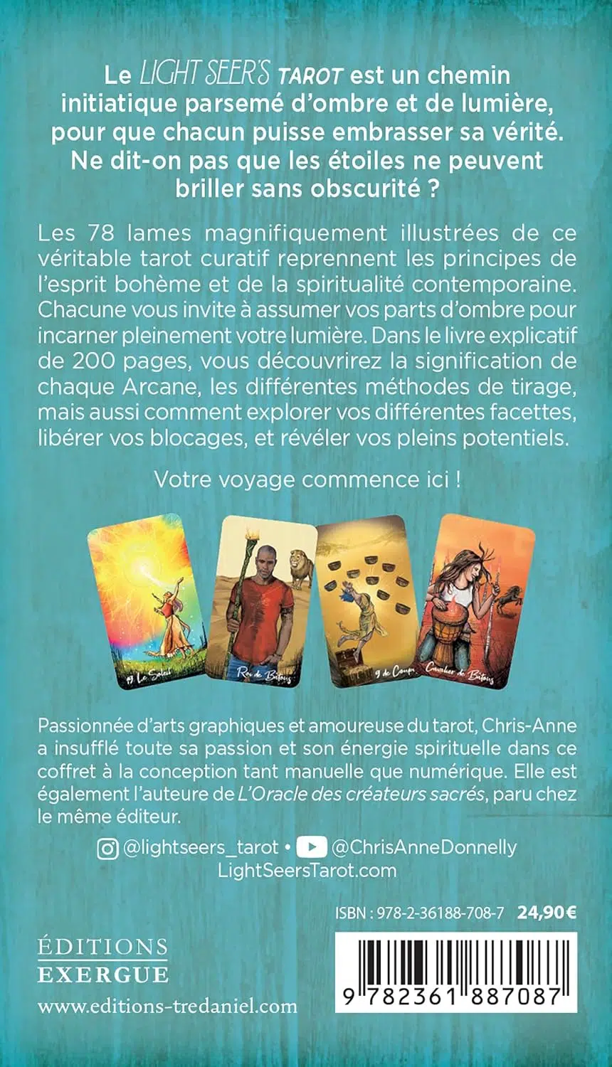 Vous cherchiez un tarot riche de ses symboles anciens tout en désirant un visuel actuel ? Le Light seer’s tarot réussit le tour de force de préserver les valeurs de 78 arcanes du tarot (basé sur le tarot Rider Waite), tout en proposant des illustrations totalement modernes. Vous n’éprouverez aucune difficulté à vous projeter dans ses illustrations et à comprendre leurs significations. Considéré comme l’un des plus beaux tarots moderne de notre époque, traduit dans de nombreuses langues, ses cartes vivantes et vibrantes vous emporteront. Cheminant entre ombres et lumières sur une voie initiatique, en quête de vérité, mêlant esprit bohème et spiritualité contemporaine… Son livret explicatif vous accompagnera pour approfondir chaque carte et découvrir différents tirages.