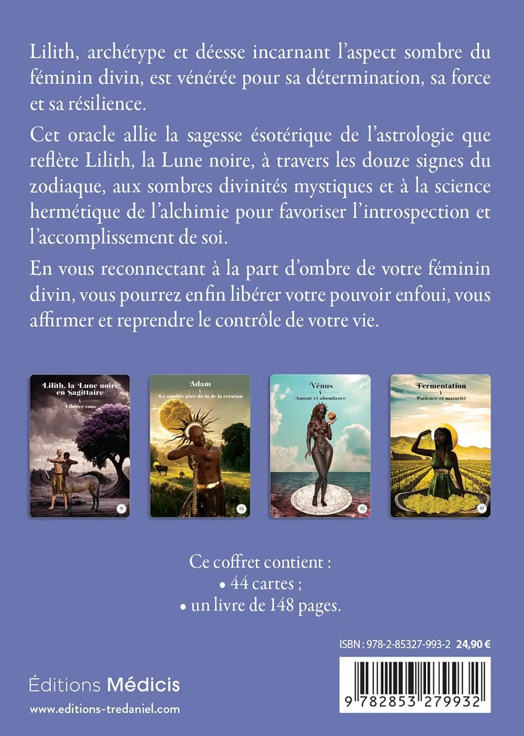 Cet oracle allie la sagesse ésotérique de l'astrologie que reflète Lilith, la Lune noire, à travers les douze signes du zodiaque, aux sombres divinités mystiques et à la science hermétique de l'alchimie pour favoriser l'introspection et l'accomplissement de soi.