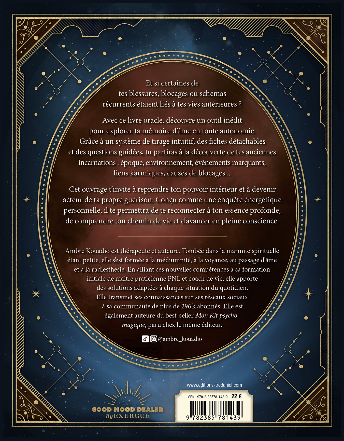 Avec ce livre oracle, découvre un outil inédit pour explorer ta mémoire d’âme en toute autonomie. Grâce à un système de tirage intuitif, des fiches détachables et des questions guidées, tu partiras à la découverte de tes anciennes incarnations : époque, environnement, événements marquants, liens karmiques, causes de blocages…