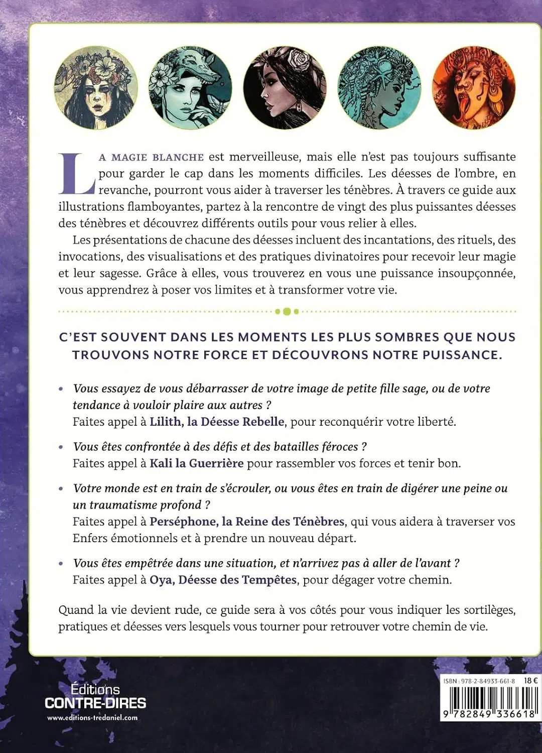 La magie blanche est merveilleuse, mais elle n'est pas toujours suffisante pour garder le cap dans les moments les plus difficiles. Les puissantes déesses de l'ombre que vous découvrirez ici, en revanche, pourront vous aider à traverser les ténèbres.La Magie des déesses de l'ombre présente vingt des plus puissantes déesses des ténèbres, ainsi que différents outils pour vous relier à elles. Les présentations des déesses incluent des incantations, des rituels, des invocations, des visualisations et des pratiques divinatoires pour recevoir la magie et la sagesse des déesses. Grâce à elles, vous deviendrez fortes, vous apprendrez à poser vos limites et à transformer votre vie.