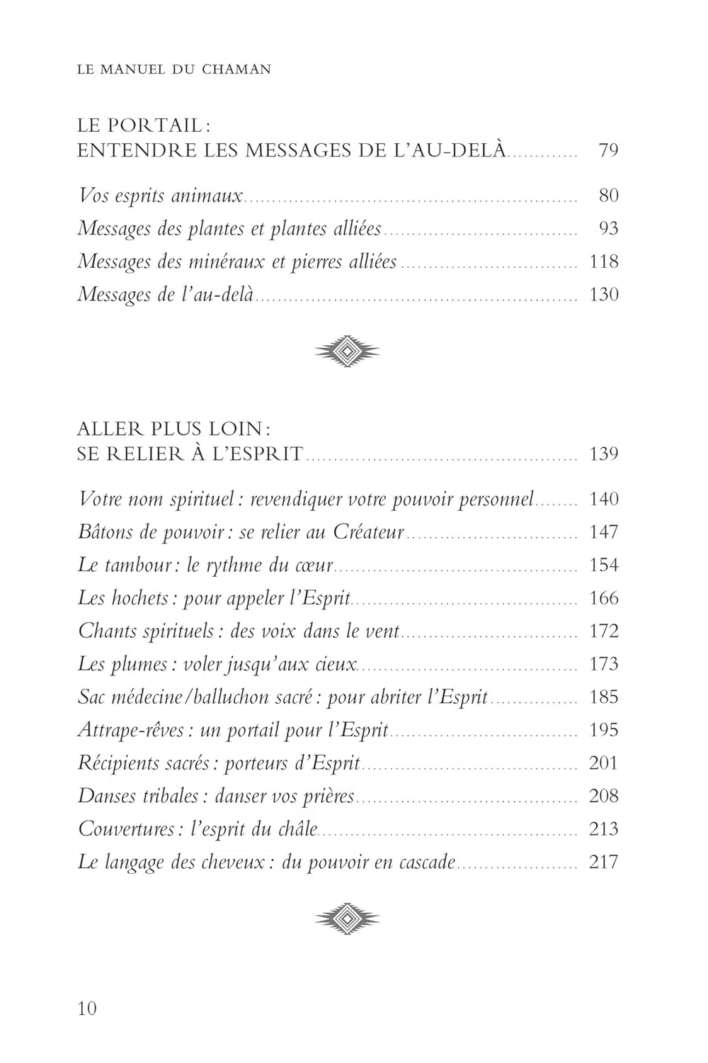 Communiquant avec les esprits de la nature, le chaman est un sage qui peut nous aider à favoriser notre connexion avec les forces mystérieuses qui nous entourent et nous ouvrir le chemin de la spiritualité.Vous découvrirez ainsi votre véritable nom, votre animal allié ou encore comment fabriquer vos propres objets de force et de protection, tels qu'un capteur de rêve, un bâton de pouvoir, une plume de prière ou encore un sac médecine. Apprendre à communiquer avec les esprits, les plantes et les animaux qui vous entourent vous permettra de recevoir leurs précieux messages et de bénéficier de leur sagesse et de leur protection. Ainsi, vous deviendrez plus attentif aux appels de la vie sauvage, aux cycles des saisons et de la vie.