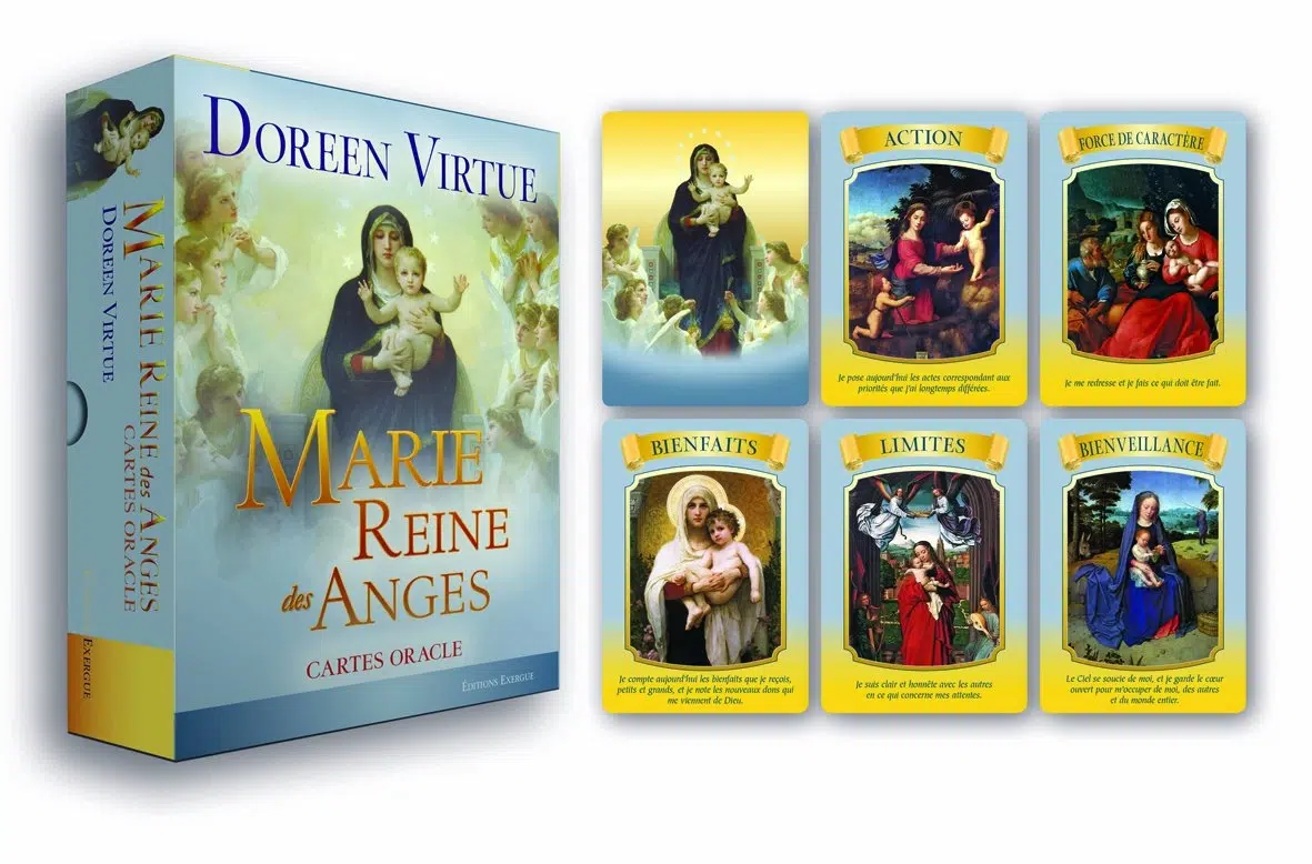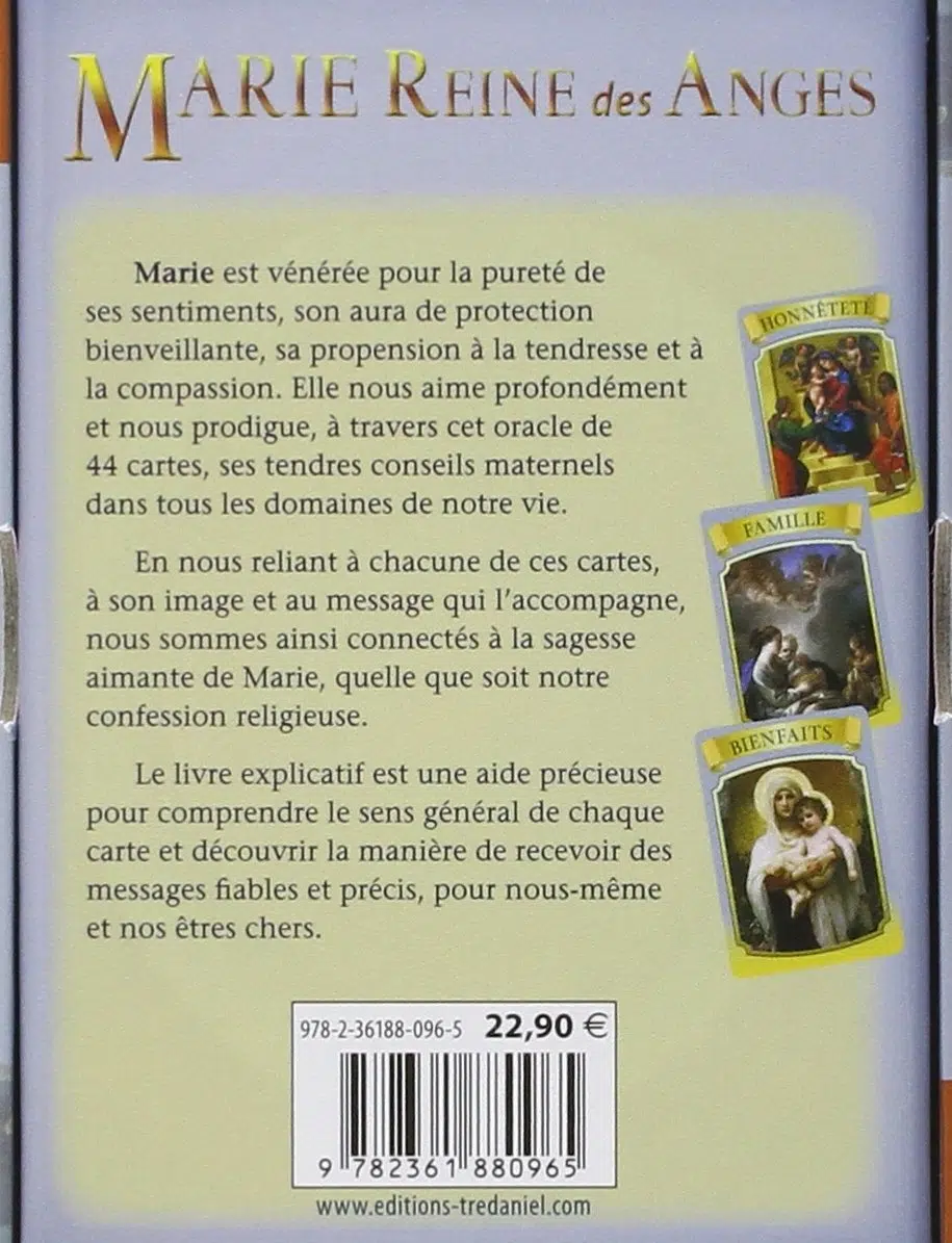 Marie est vénérée pour la pureté de ses sentiments, sa propension à la tendresse, à la compassion, son aura de protection bienveillante. À travers Marie, Reine des Anges et ses 44 cartes d'enseignement oracle, elle prodigue ses tendres conseils maternels dans tous les domaines de notre vie.