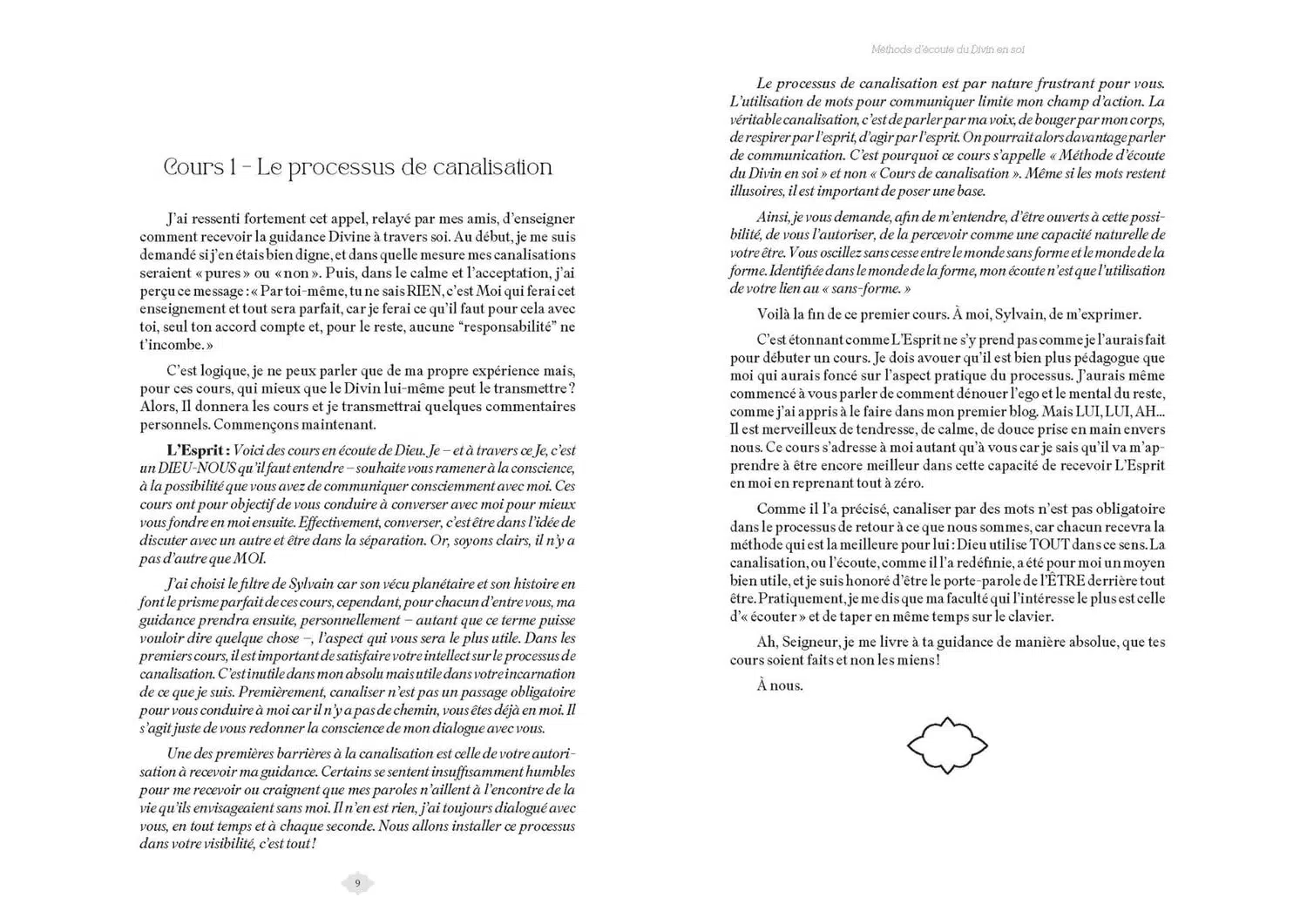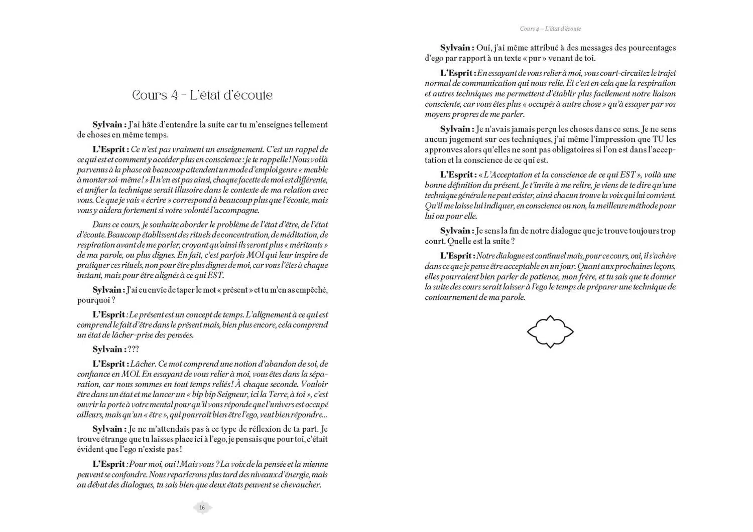 La première partie est un guide de communication avec l’invisible grâce auquel, si vous vous l’autorisez, vous pourrez accepter et percevoir comme une capacité naturelle de votre être le fait de communiquer avec le Divin et, par conséquent, [re]découvrir votre part divine. Dans la seconde partie, l’Esprit répond aux questions posées par les lecteurs à l’auteur, révélant ainsi de nouvelles possibilités d’interprétation et de manifestation du monde qui vous entoure.