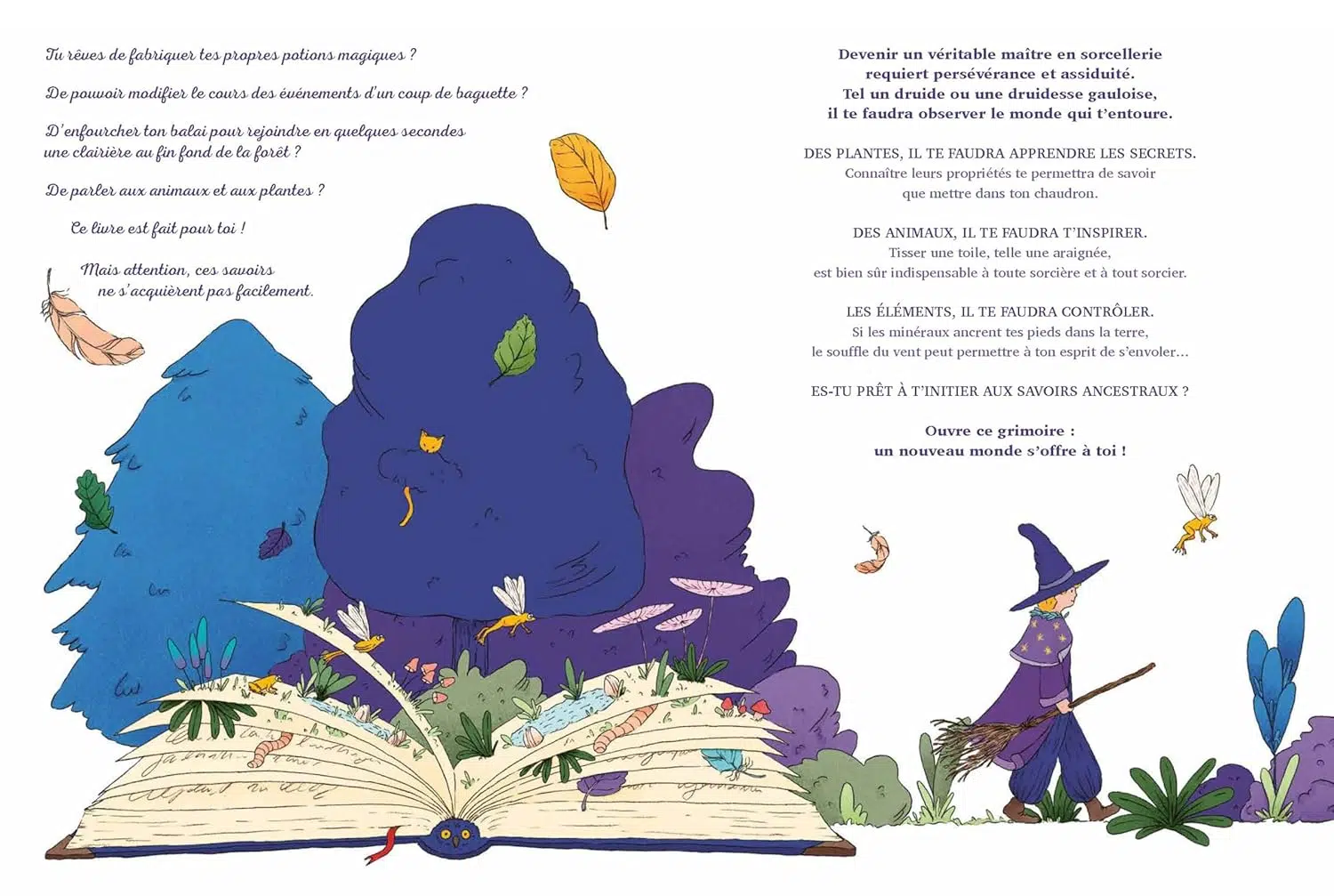 Ce grimoire te permettra très simplement de fabriquer ta propre baguette magique, de concocter un philtre d’amour, d’identifier les plantes, de collectionner les plumes, de cultiver des algues, de reconnaître les chouettes et les hiboux, de dompter les orties, d’explorer les phases de la lune…