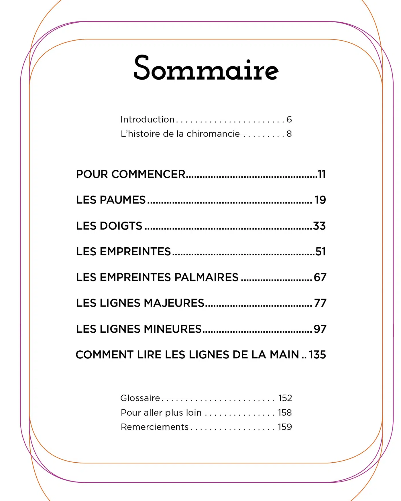 Ce petit livre illustré vous enseigne tout ce que vous devez savoir pour apprendre à lire vos mains, en ce qui concerne :