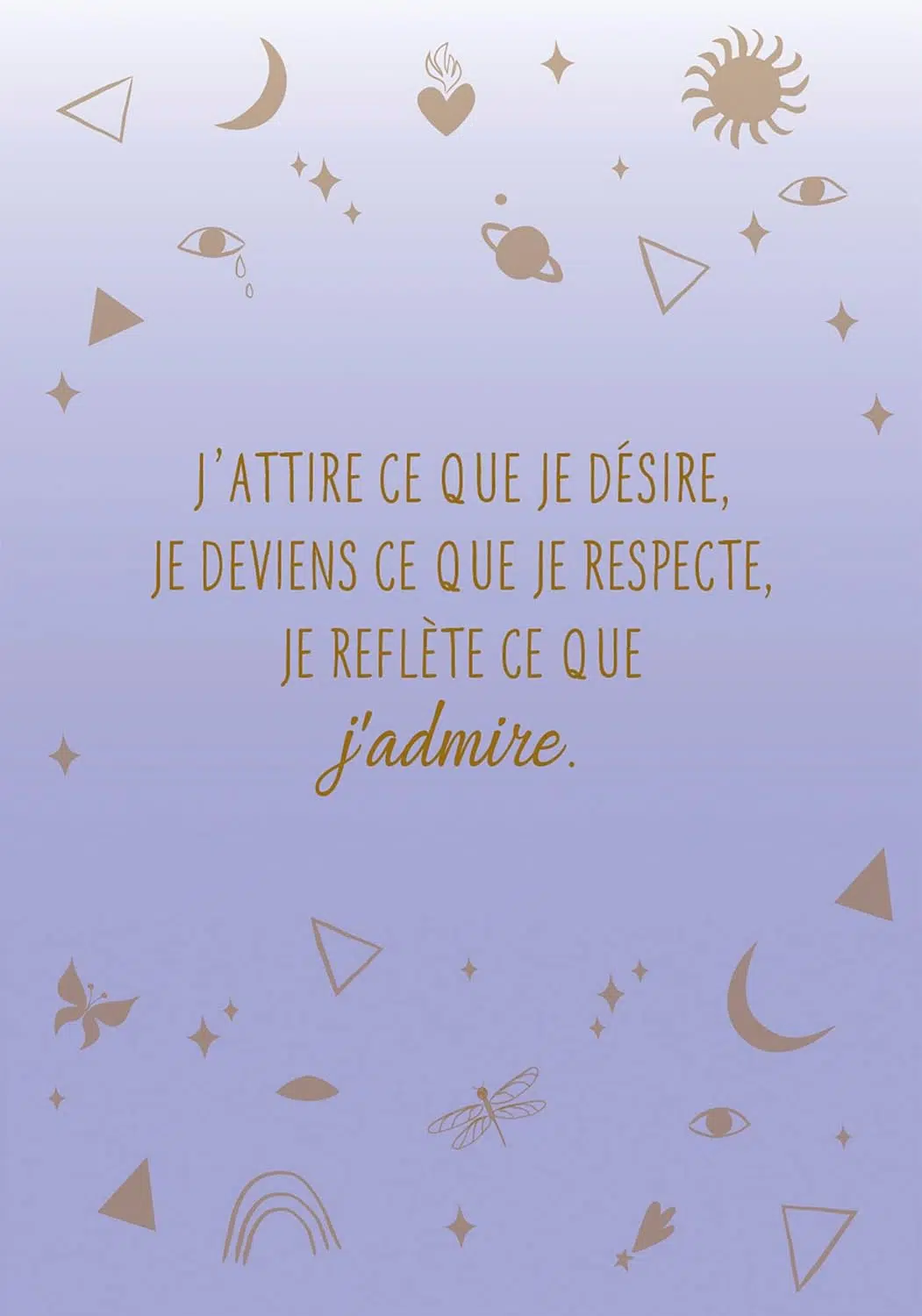 À chaque tirage, une petite phrase inspirante, un message, un mantra arrive comme par magie, au bon moment pour sublimer et maintenir vos intentions.