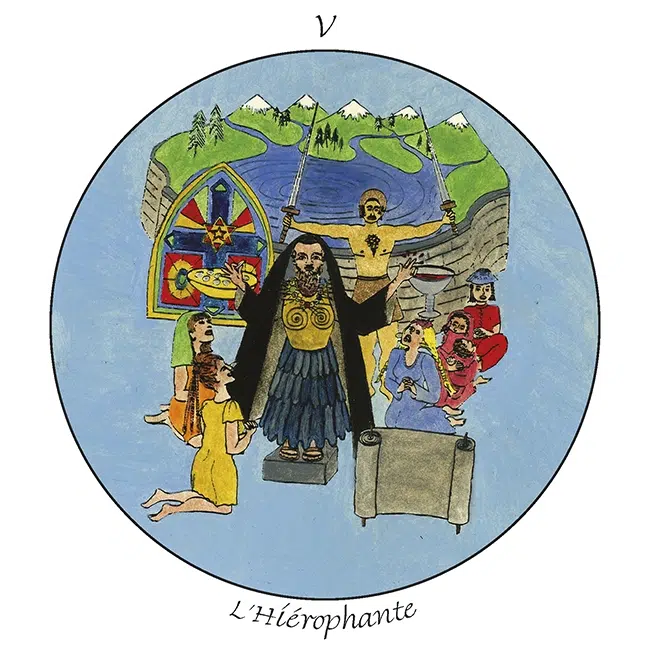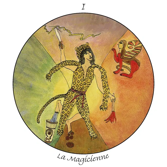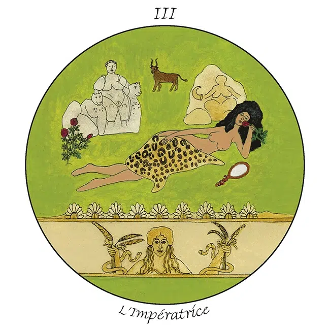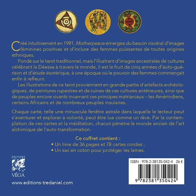 Les illustrations de ce tarot proviennent en grande partie d’artefacts archéologiques, de peintures rupestres et de ruines de ces cultures antérieures, ainsi que de peuples encore vivants incarnant ces principes matriarcaux – les Amérindiens, certains Africains et de nombreux peuples insulaires.