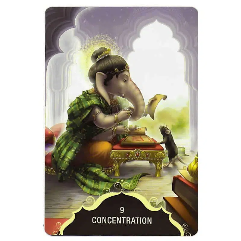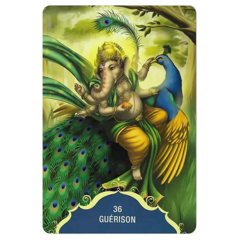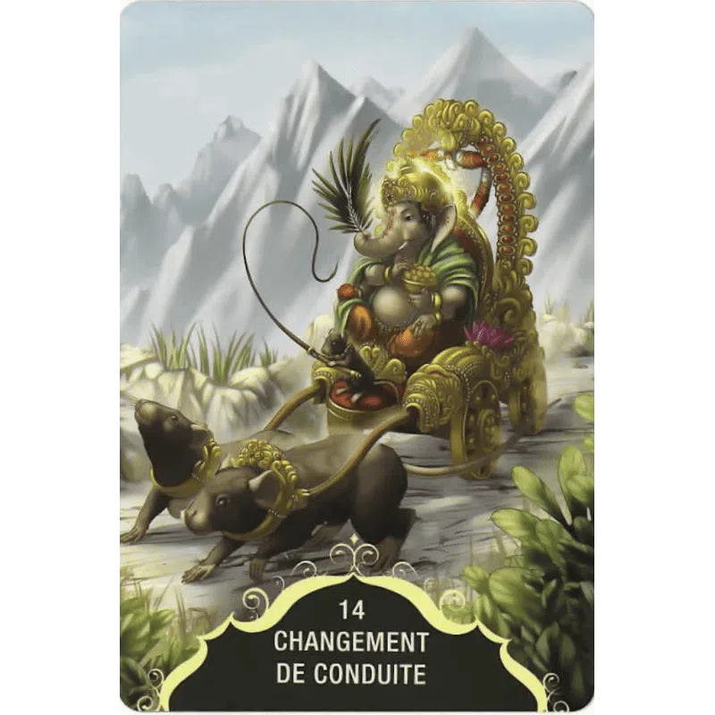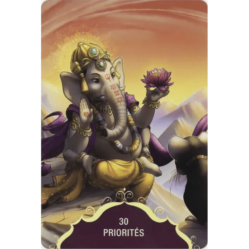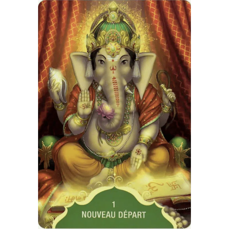 GANESH, l'illustre dieu à tête d'éléphant, est l'une des déités les plus vénérées du panthéon hindou. Son énergie a le pouvoir de détruire tous les obstacles et de vous offrir sagesse, prospérité et succès dans tout ce que vous choisissez d'entreprendre. Grâce à cet oracle de 50 cartes magnifiquement illustrées, accompagné de son livre explicatif, invoquez la protection et les bénédictions de Ganesh, patron des arts et des sciences, et gardien de la connaissance. Il saura vous guider avec douceur et clarté et vous aider à trouver la force nécessaire pour faire face aux défis qui peuvent se présenter sur votre chemin.