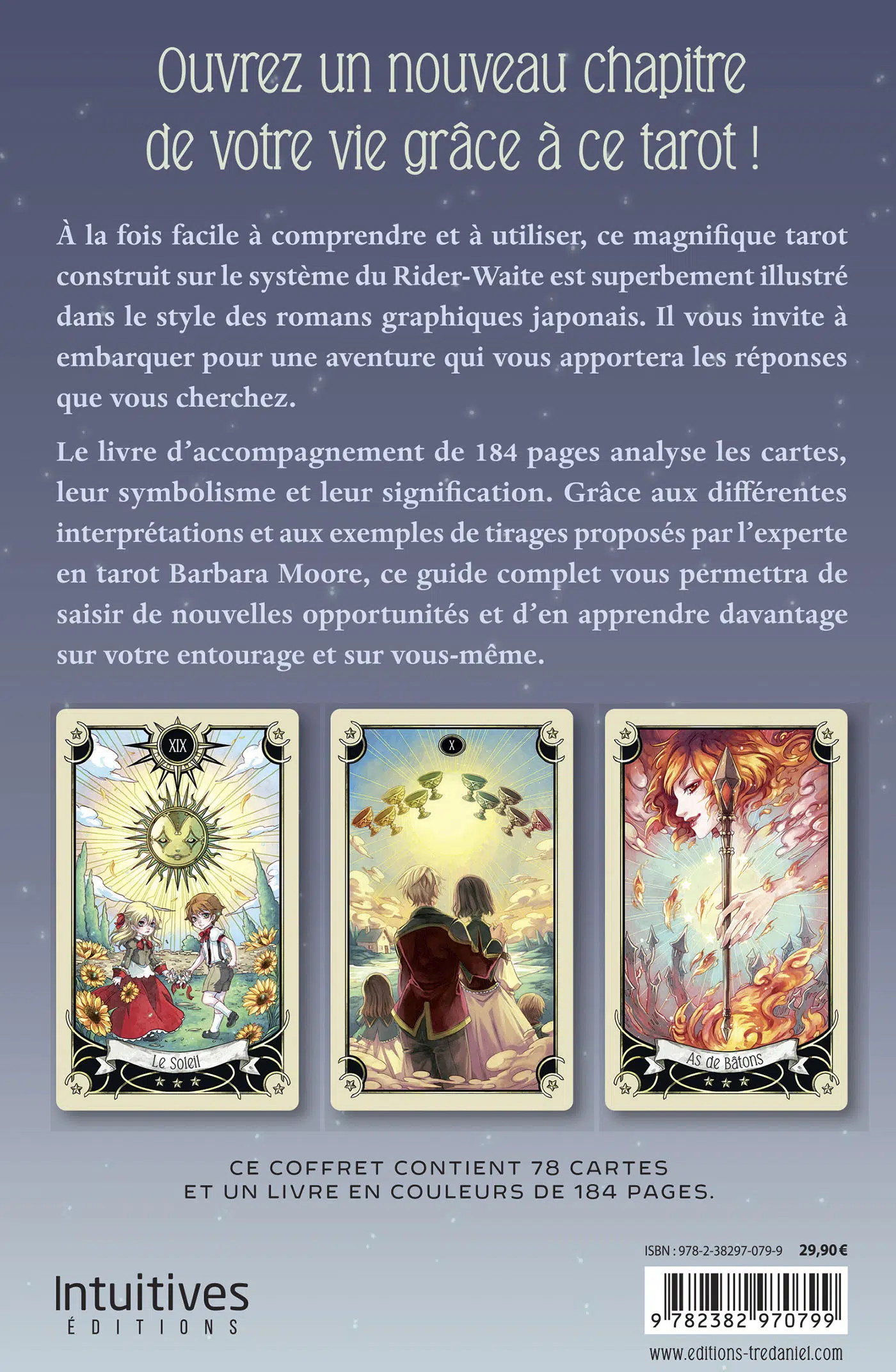 À la fois facile à comprendre et à utiliser, ce magnifique tarot construit sur le système du Rider-Waite est superbement illustré dans le style des romans graphiques japonais. Il vous invite à embarquer pour une aventure qui vous apportera les réponses que vous cherchez.
