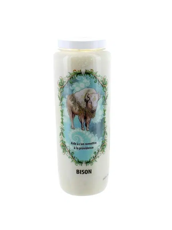 Bison, Telle une apparition, je te vois Blanc Puissant Majestueux, Comme une émanation tu t'élèves - Et la fumée sacrée et purificatrice qui t'accompagne - Annonce des temps bénis où les prières seront exaucées. Entends la mienne, Protecteur Céleste et irradie ma vie - De ta lumière protectrice - Afin que l'Etre Divin en moi s'éveille. Je te rends grâce pour ton soutien - Et les bienfaits de mon existence, Je me recueille avec ferveur. Le pouvoir du silence m'apporte la paix, Renforce ma foi et mon élan spirituel. J'ai confiance en la Providence - Et me sens prêt à recevoir L'Abondance. Moi, enfant de Ciel Père et de Terre Mère, Je te remercie, Bison, Pour ta générosité et ta protection suprême, Sur ce chemin de sagesse. Grâce à toi et avec toi, je Grandis.