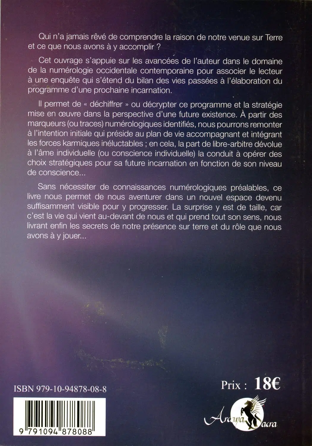 Cet ouvrage s'appuie sur les avancées de l'auteur dans le domaine de la numérologie occidentale contemporaine pour associer le lecteur à une enquête qui s'étend du bilan des vies passées à l'élaboration du programme d'une prochaine incarnation.