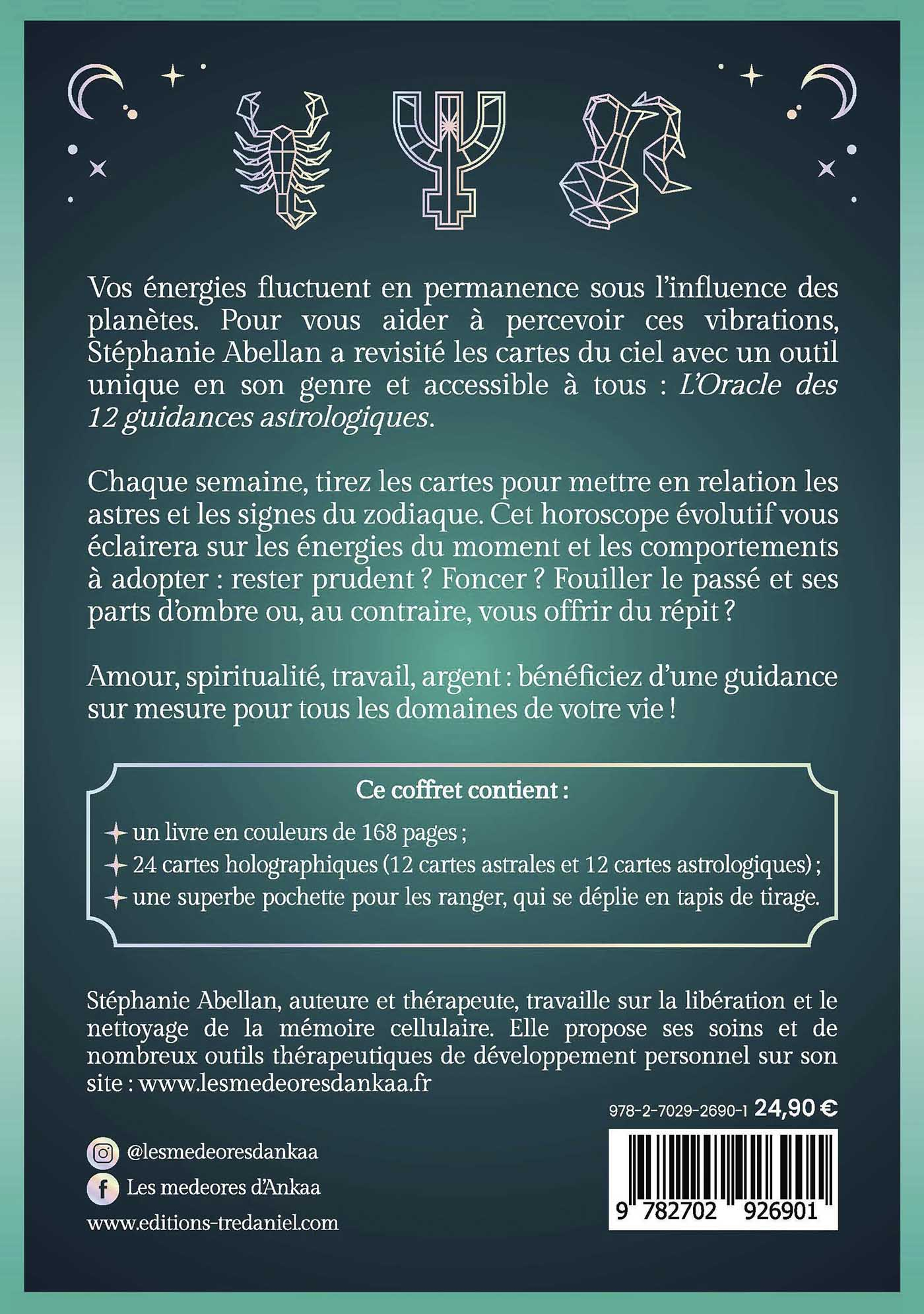 Vos énergies fluctuent en permanence sous l’influence des planètes. Pour vous aider à percevoir ces vibrations, Stéphanie Abellan a revisité les cartes du ciel avec un outil unique en son genre et accessible à tous : L’Oracle des 12 guidances astrologiques.
