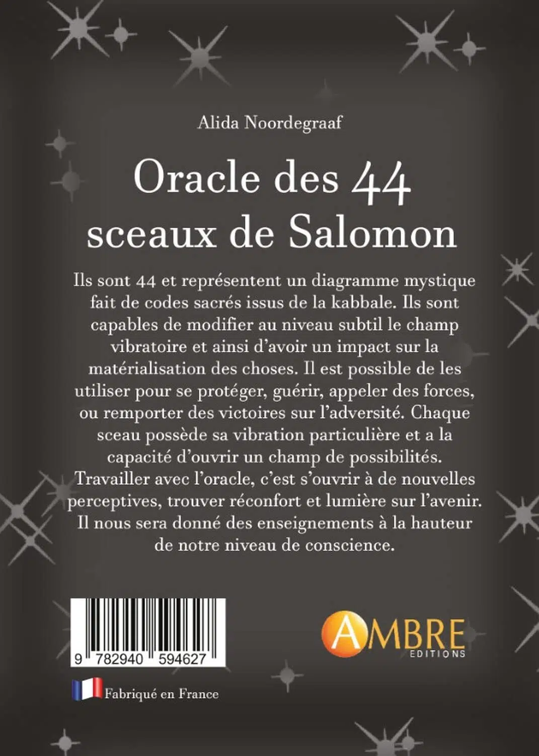 Ils sont 44 et représentent un diagramme mystique fait de codes sacrés issus de la kabbale. Ils sont capables de modifier au niveau subtil le champ vibratoire et ainsi d’avoir un impact sur la matérialisation des choses. Il est possible de les utiliser pour se protéger, guérir, appeler des forces, ou remporter des victoires sur l’adversité. Chaque sceau possède sa vibration particulière et a la capacité d’ouvrir un champ de possibilités.