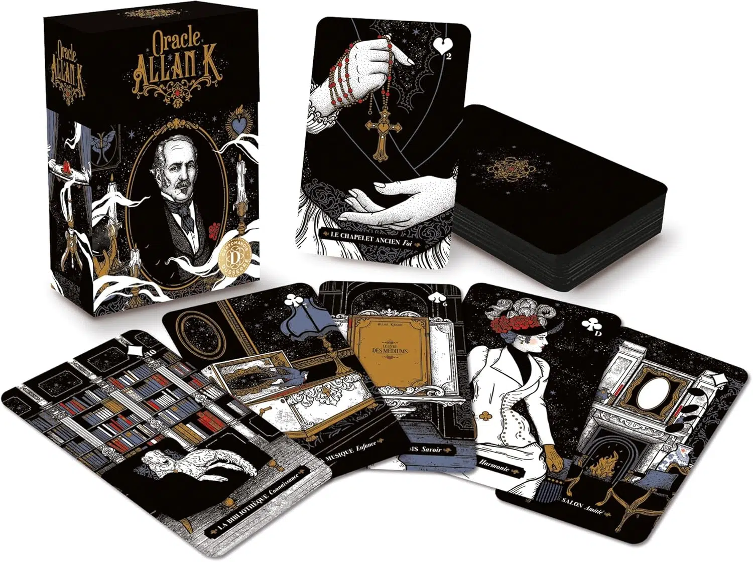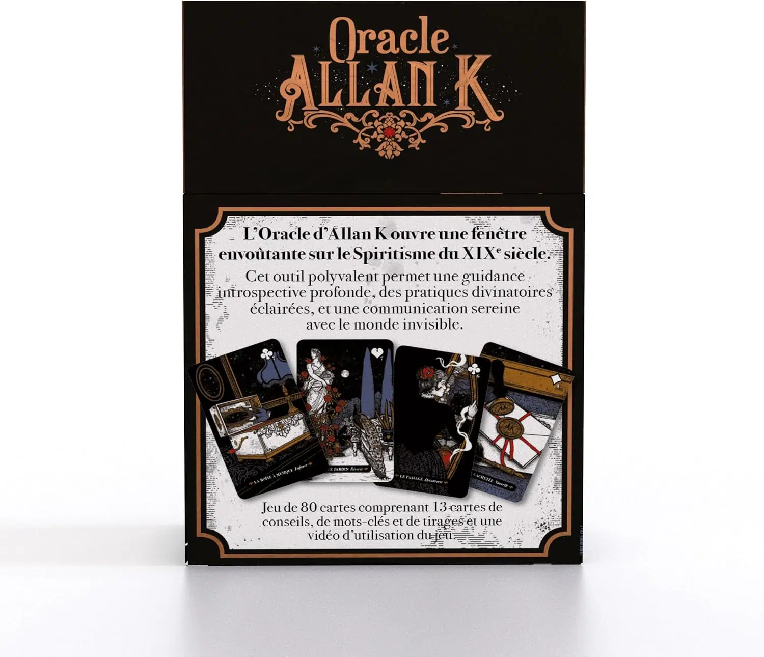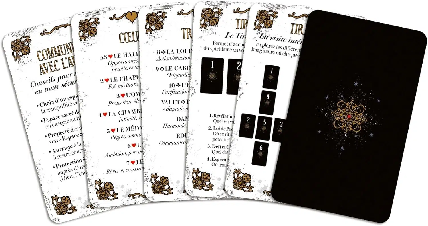Inspiré par les enseignements du célèbre médium spirite Allan Kardec, associé à des clins d'œil à la cartomancie classique, ce jeu canalise les messages des autres plans d'existence pour vous accompagner.