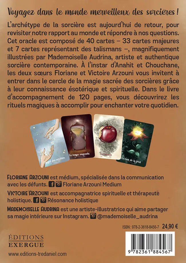 Cet oracle est composé de 40 cartes d'enseignement – 33 cartes d'enseignement majeures et 7 cartes d'enseignement représentant des talismans –, magnifiquement illustrées par Mademoiselle Audrina, artiste et authentique sorcière contemporaine.