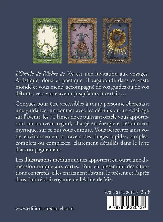 L’Oracle de l’Arbre de Vie vagabonde dans ce vaste monde et vous mène, accompagné de vos guides ou de vos défunts, vers votre avenir jusqu’alors incertain...
