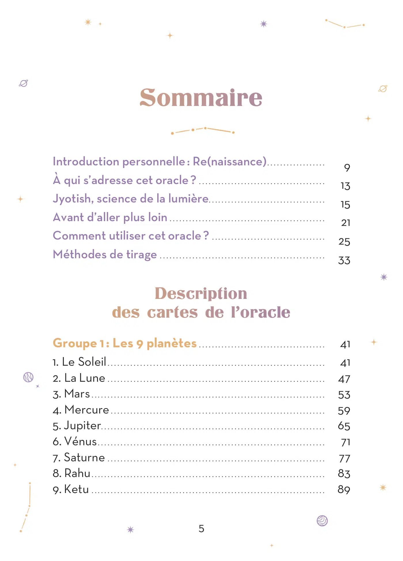 Cet oracle vous invite à explorer toutes les facettes de votre être à travers le Jyotish, l’astrologie védique pratiquée depuis des millénaires. Composé de 51 cartes et d’un livre explicatif tout en couleurs, il vous offre des textes inspirants et des rituels à pratiquer selon vos besoins du moment. Riche en symboles, en archétypes et en récits mythologiques, c’est un puissant outil de connaissance de soi, d’amour intérieur et de reconnexion à votre essence.
